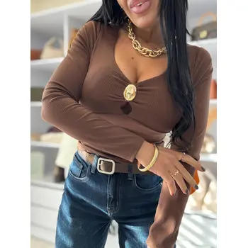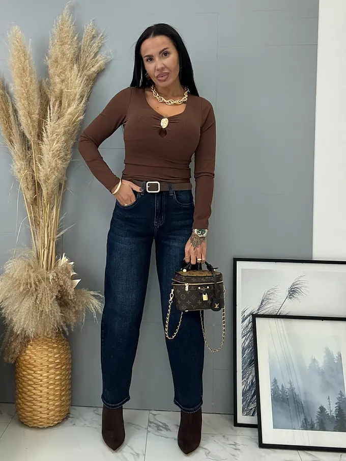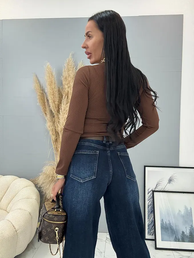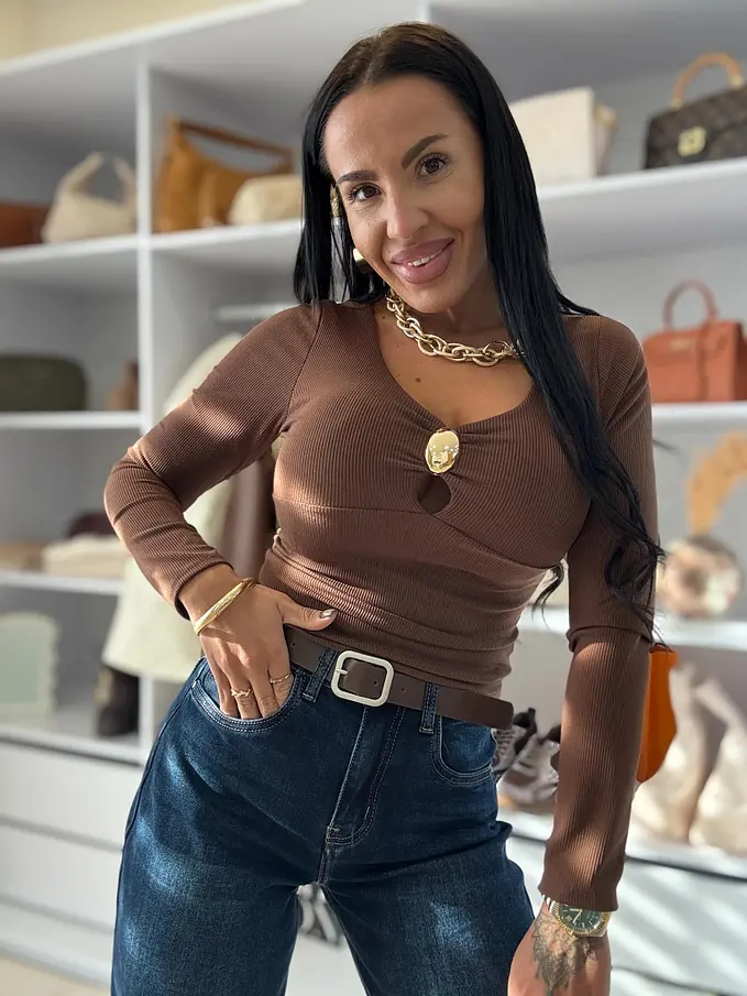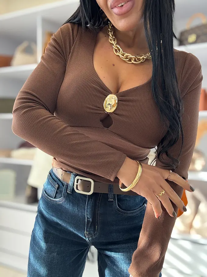 Dámské rebrované tričko s výstužou a zlatou ozdobou RHETA