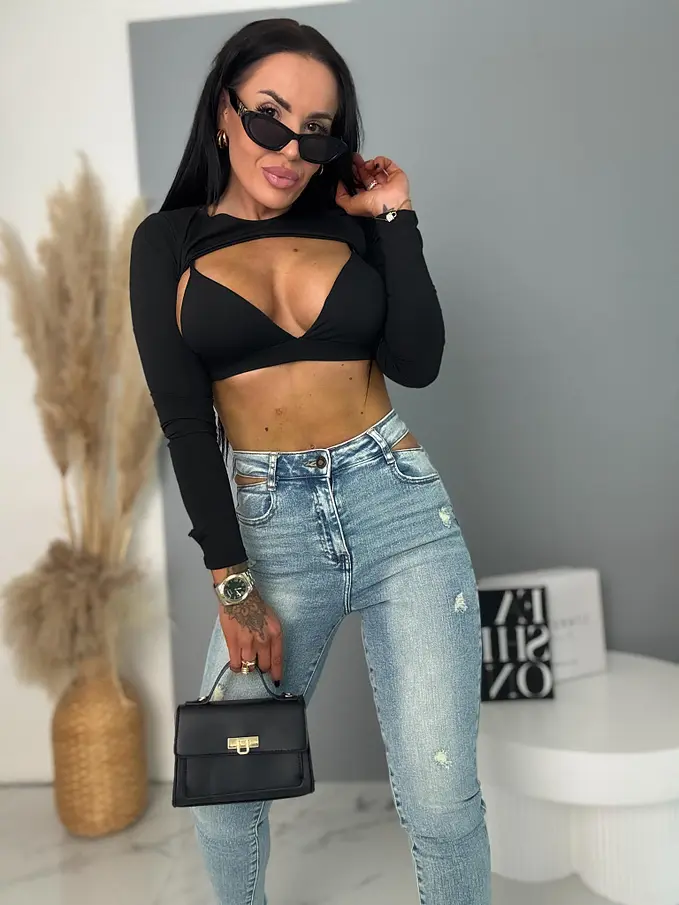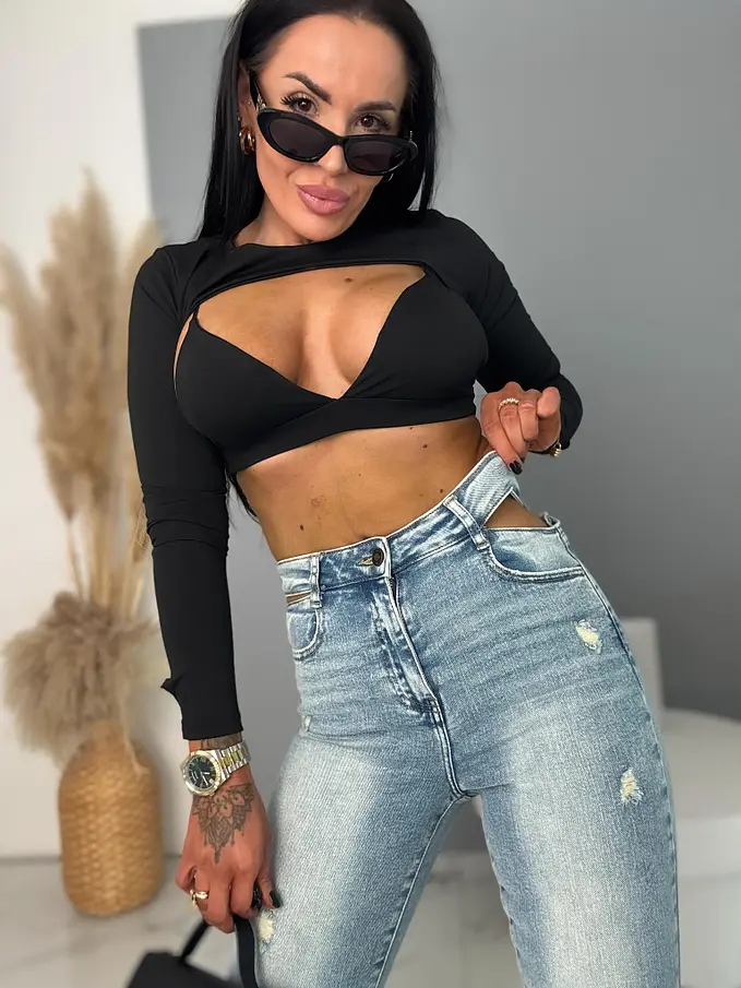 Modelka má výšku 164 cm a váži 57 kg. Na fotografii má oblečenú veľkosť S.