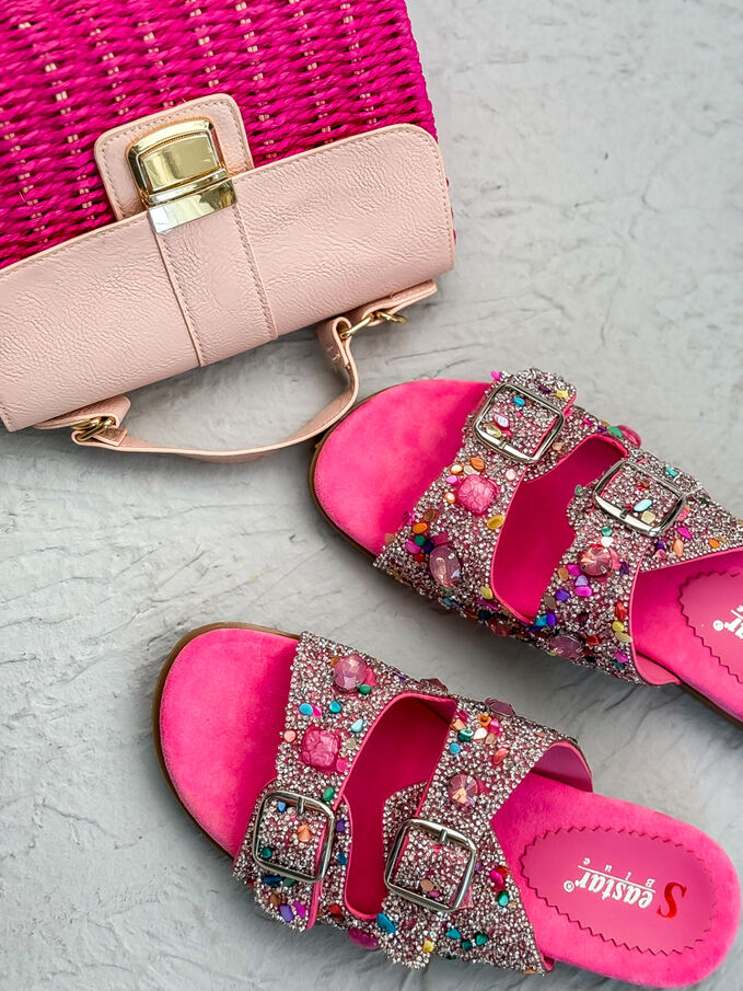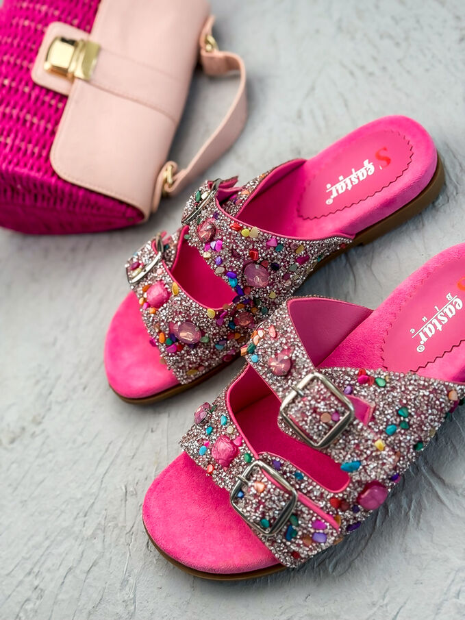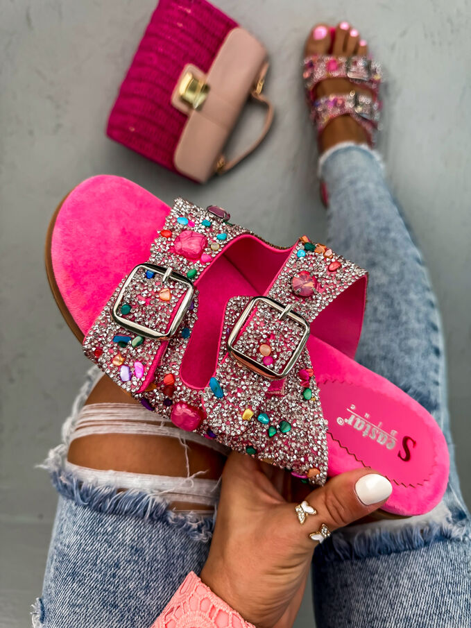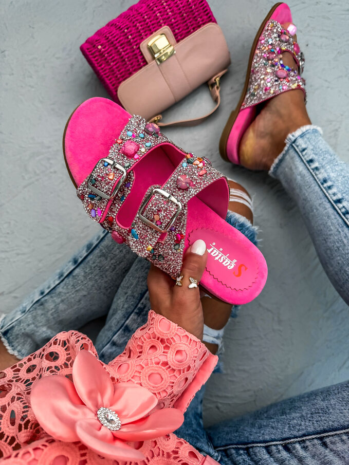 Pohodlné šľapky na každú príležitosť. Kamienky sú viacfarebné.
