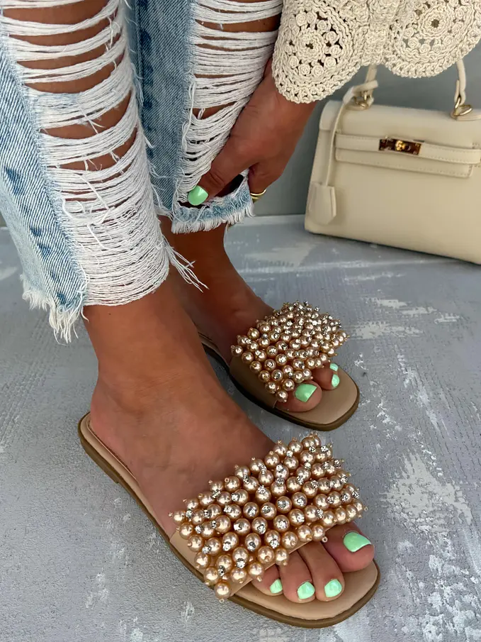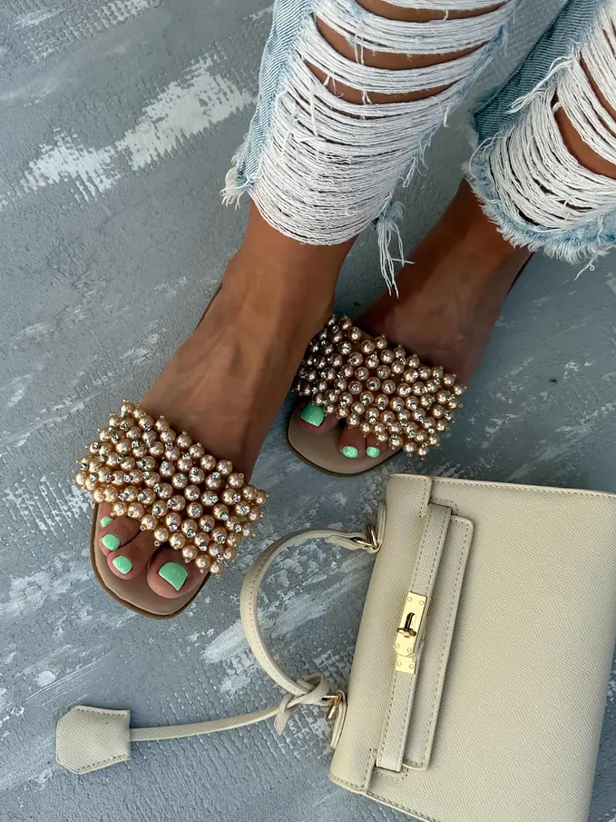Dámske šľapky zdobené korálikmi KAIDEN-