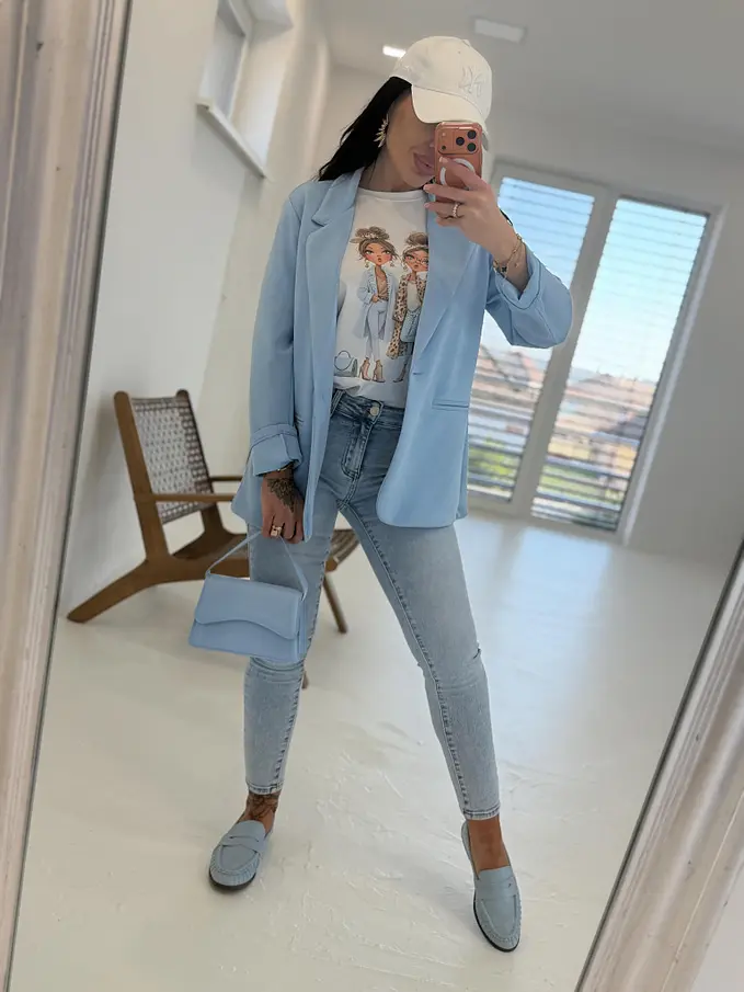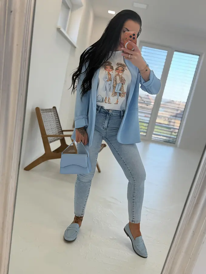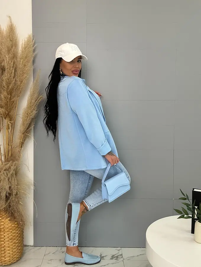 Modelka meria 164 cm a váži 57 kg. Má na sebe veľkosť S