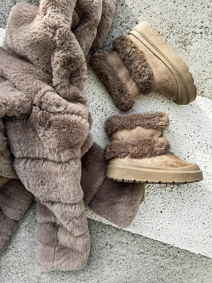 Štýlová aj v sychravom počasí? Čižmy perfektne doplnia napríklad slim džínsy a vestu z kožušinky.
