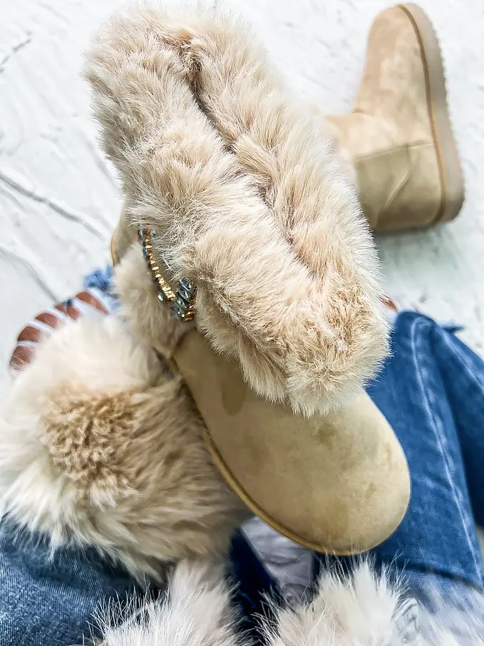 Štýlová aj v sychravom počasí? Čižmy perfektne doplnia napríklad slim džínsy a vestu z kožušinky.