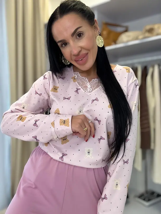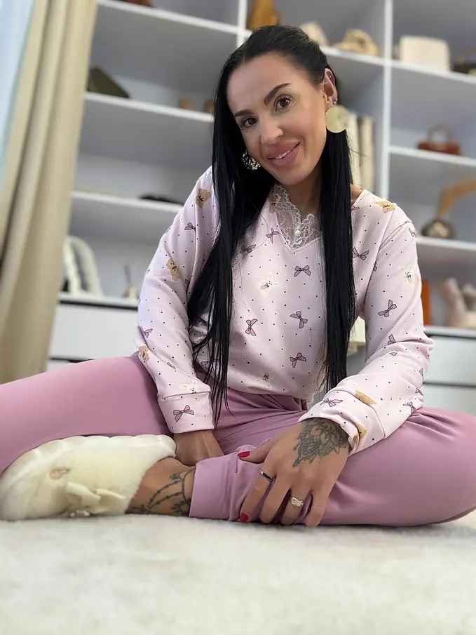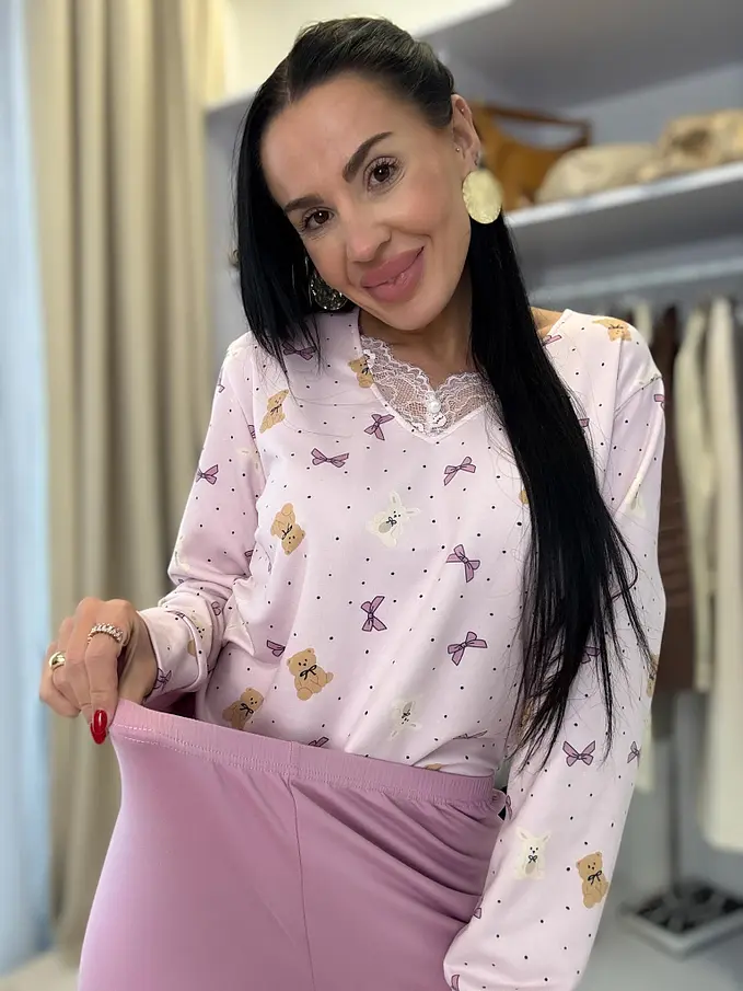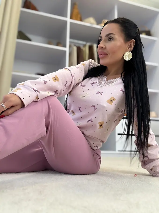 Pohodlné, teplé, mäkučké pyžamo. Nohavice majú gumený pás. Horná časť so zapínaním na gombíky.