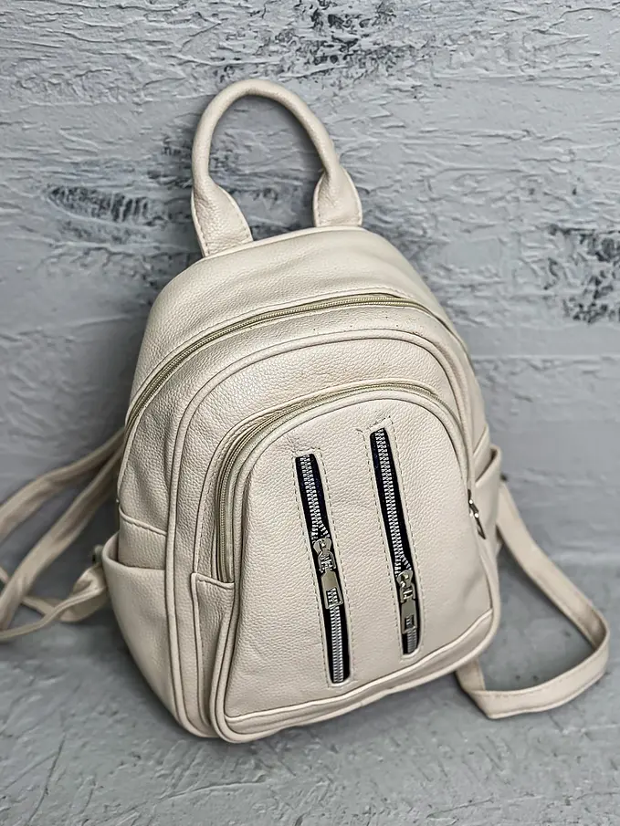 Ruksak  dlho vydrží počas používania. Má priestranné vnútro s malými vreckami na drobnosti, uzatvára sa zipsom. Pohodlne sa nosí koženými popruhmi na ramenách alebo uškom v ruke. Novinka, s ktorou budeš vždy chic. Predný zips má striebornú farbu.