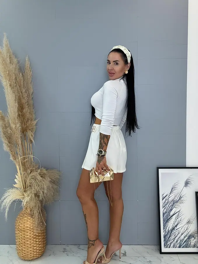 Premium kvalita. Tento skort je dokonalou kombináciou sukne a krátkych nohavíc: vpredu pôsobí ako sukňa, vzadu pohodlné šortky. Material je mierne elastický. S gumeným pásom.