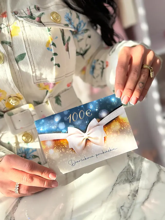Darujte módny darček! Či už váš milovaný človek sníva o úplne novom štýle, alebo hľadá perfektné doplnenie svojho obľúbeného štýlu, váš darček môže splniť tieto sny! Darčekové karty Starstyle možno použiť na nákup v akéhokoľvek tovaru na www.starstyle.sk. Prekvapte niekoho darčekom, ktorý naozaj chce!
