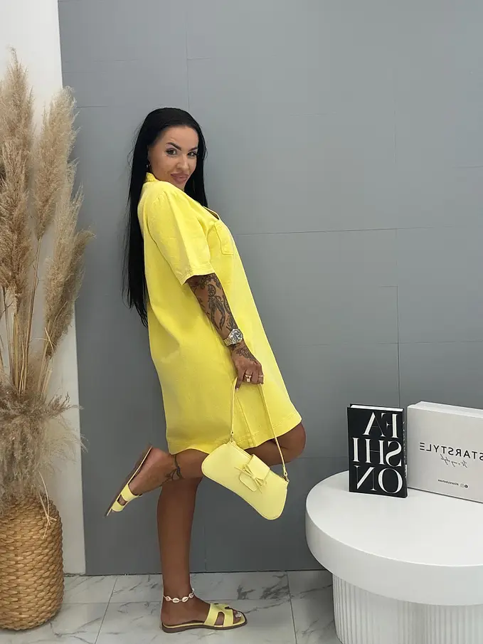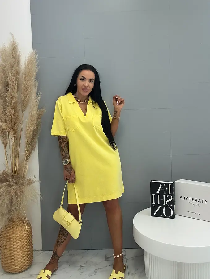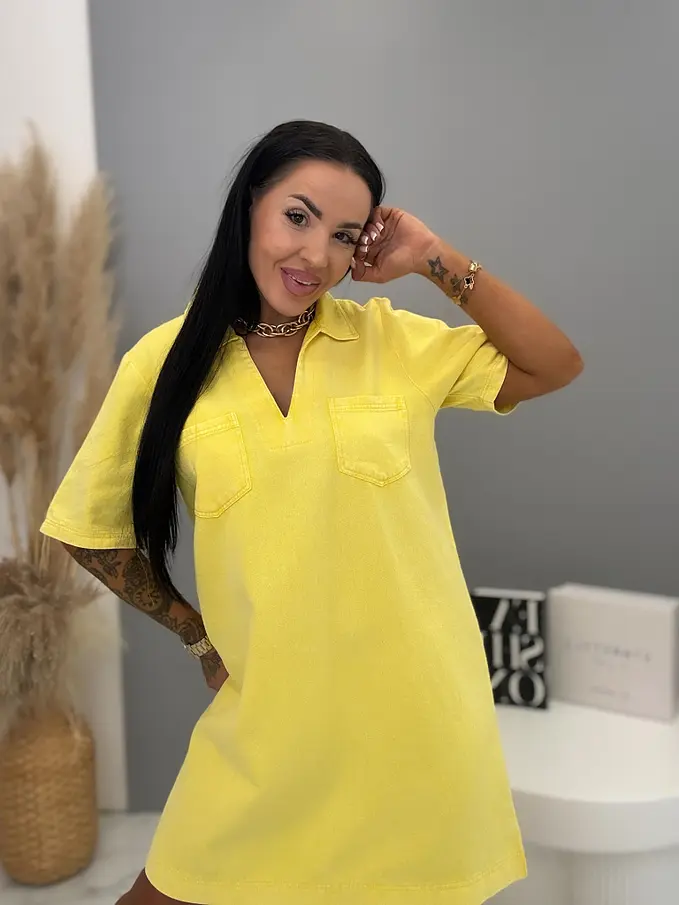 Premium kvalita. Šik a voľné denimové šaty by nemali chýbať v žiadnom dámskom šatníku. Priliehavé džínsové šaty sú vyrobené z príjemného materiálu. Látka nie je elastická.