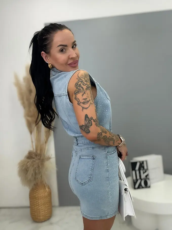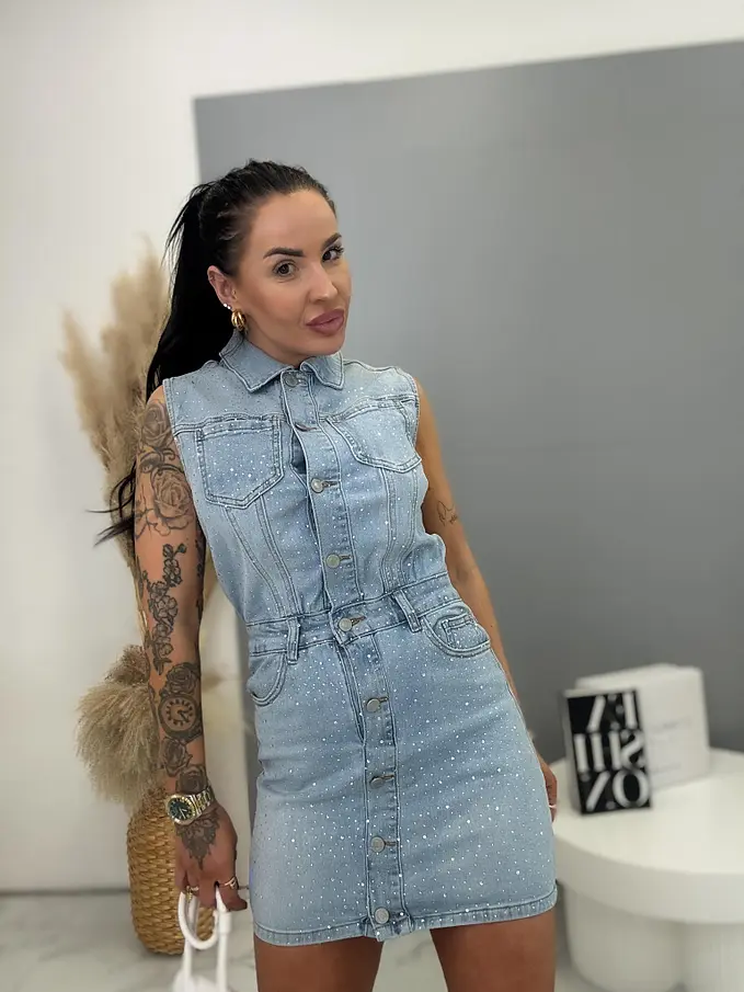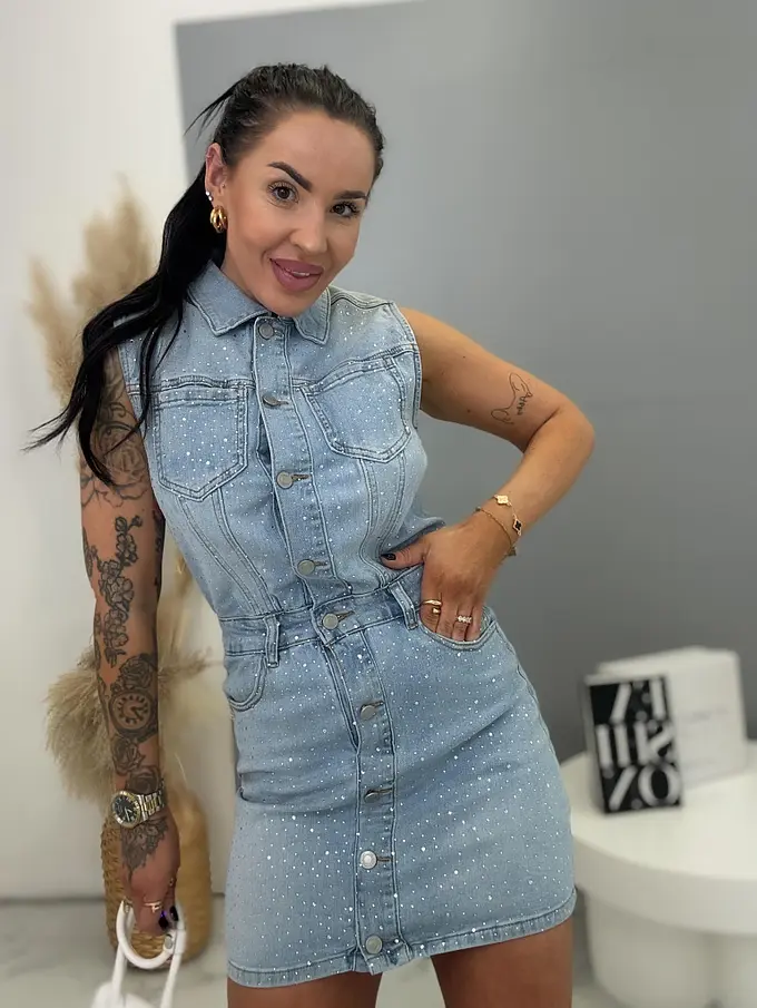 Denim šaty s kamienkami SPARKLY