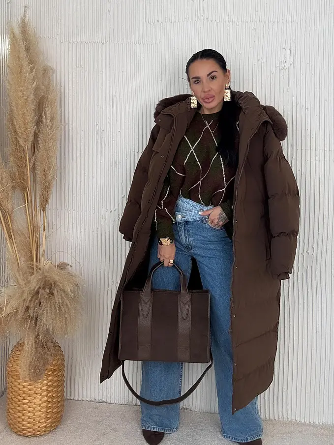Dlhá bunda s kožušinou a kapucňou NESIA
