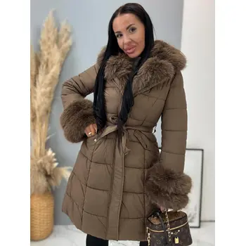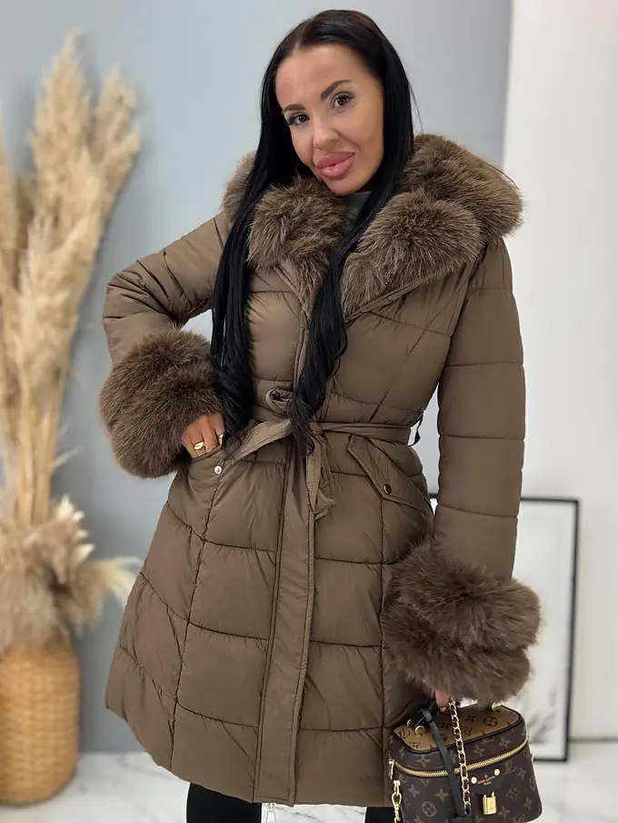 Dlhá bunda s kožušinou a opaskom LAUNA