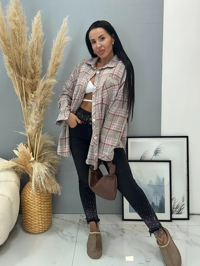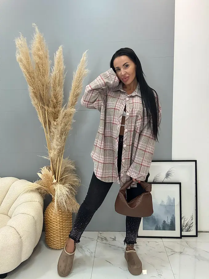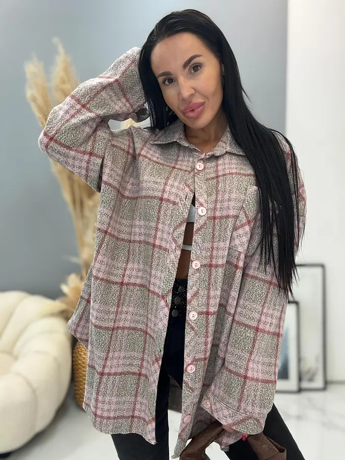 Dlhá kockovaná vrchná košeľa MARGARET+