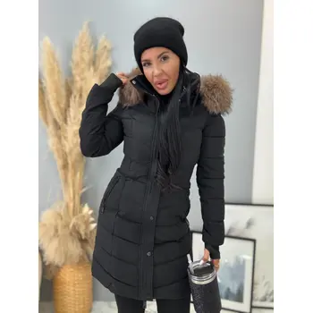 Dlhá štepovaná čierna bunda s kapucňou BABETTE+