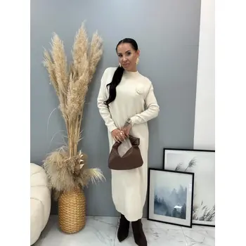 Pletené šaty vyrobené z neuveriteľne mäkkej a elastickej látky. Voľný strih so spadnutými ramenami.