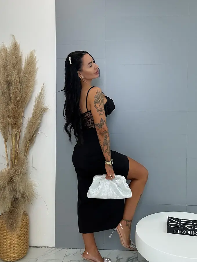 Dlhé šaty zdobené čipkou s vypchávkami ERINNE