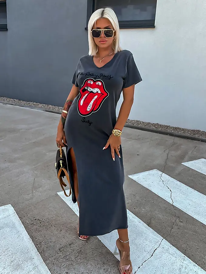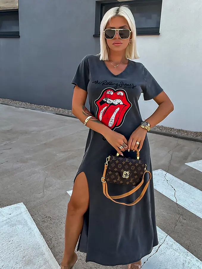 Šaty sú vyrobené z príjemného elastického materiálu. Šaty s potlačou.