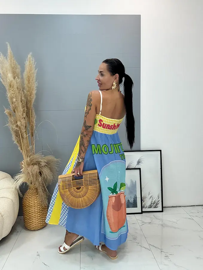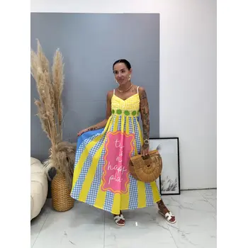 Dlhé vzorované ľanové šaty SUMMER