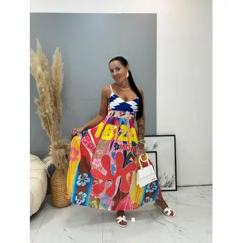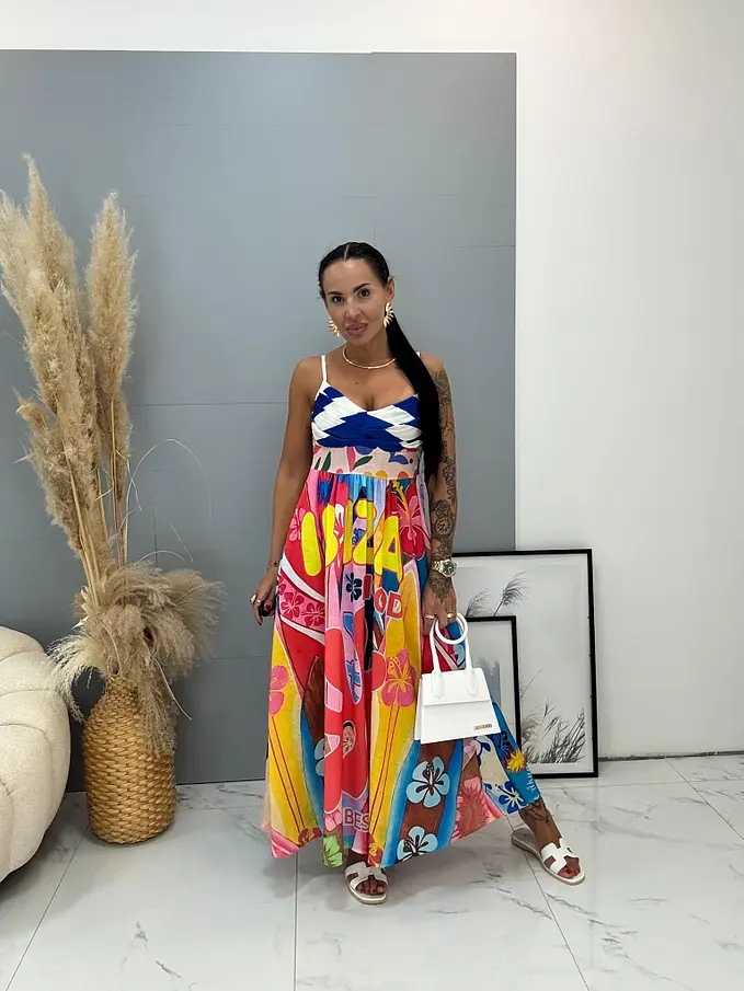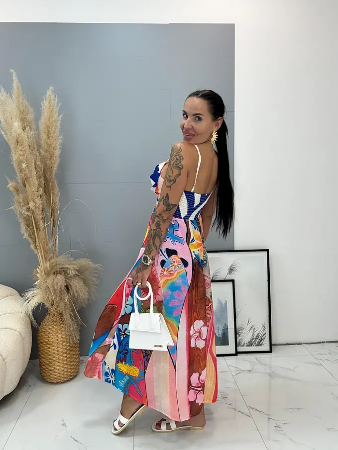 Dlhé vzorované ľanové šaty SUMMER