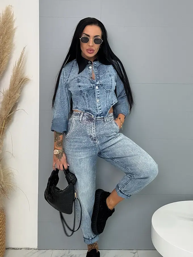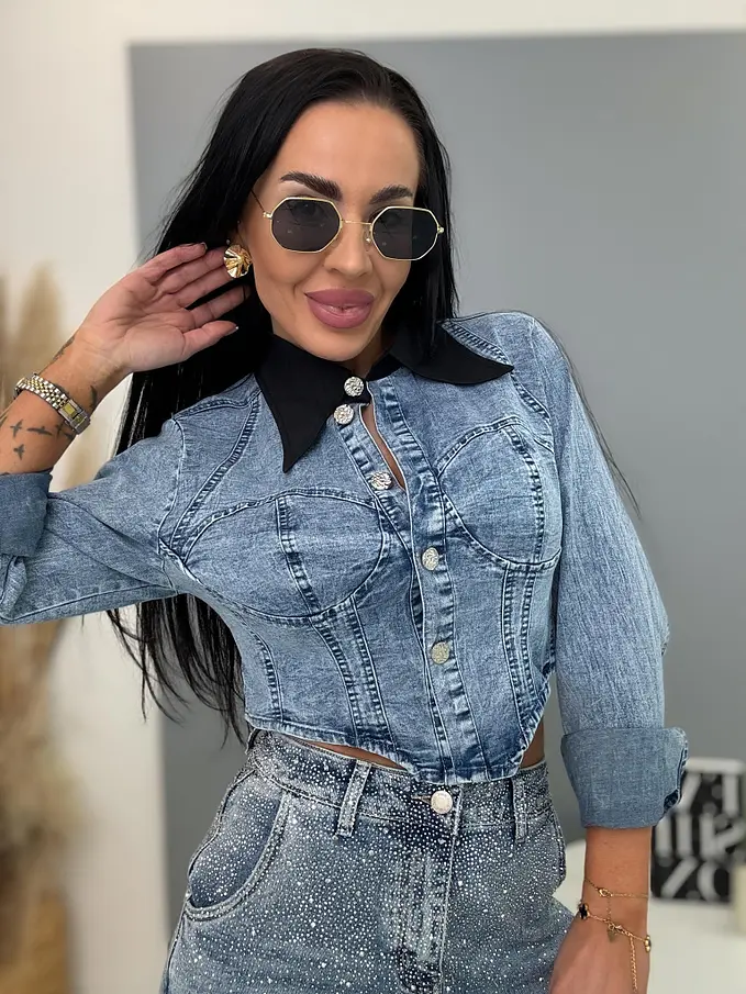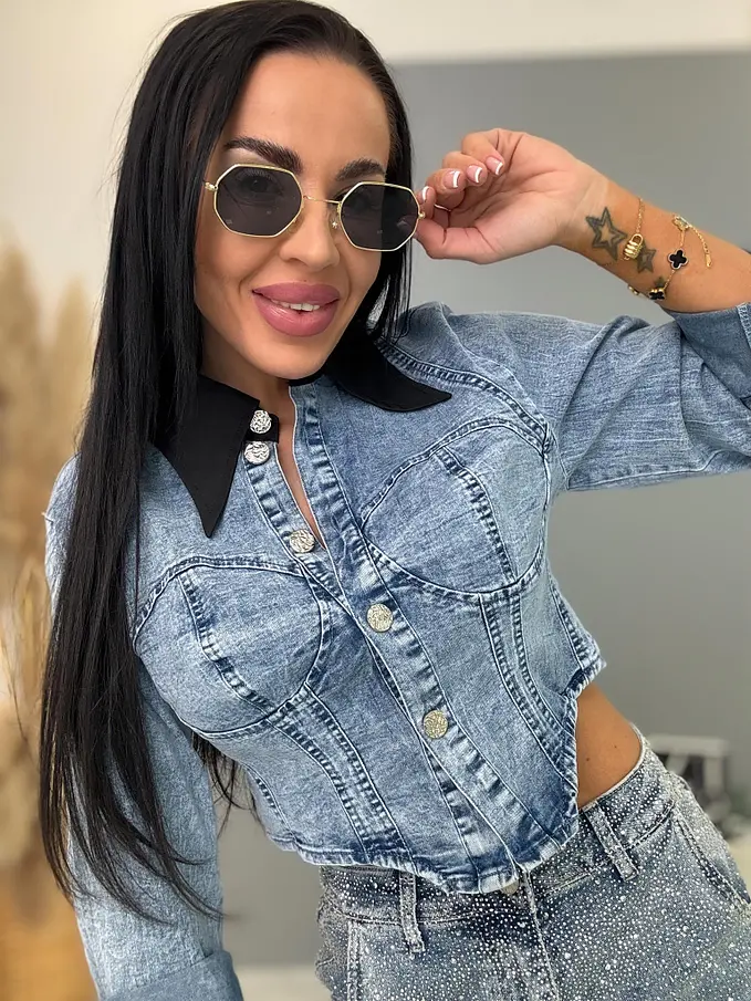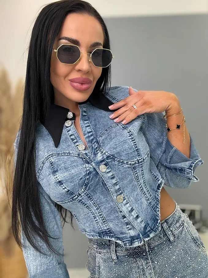 Džínsová crop košeľa NAVIA