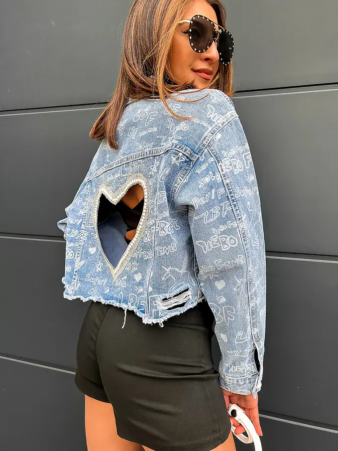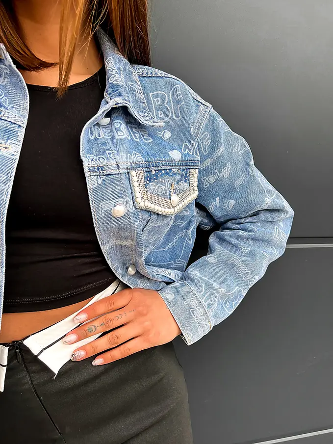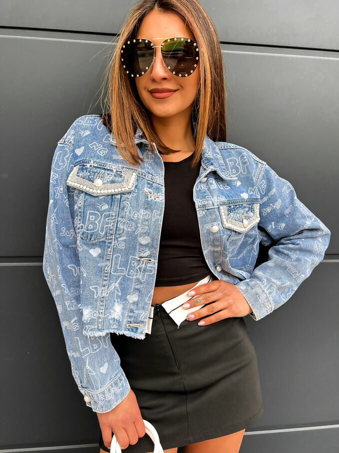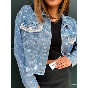 Džínsový kabát zdobený kamienkami NIAH