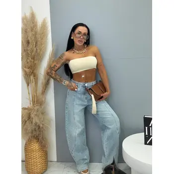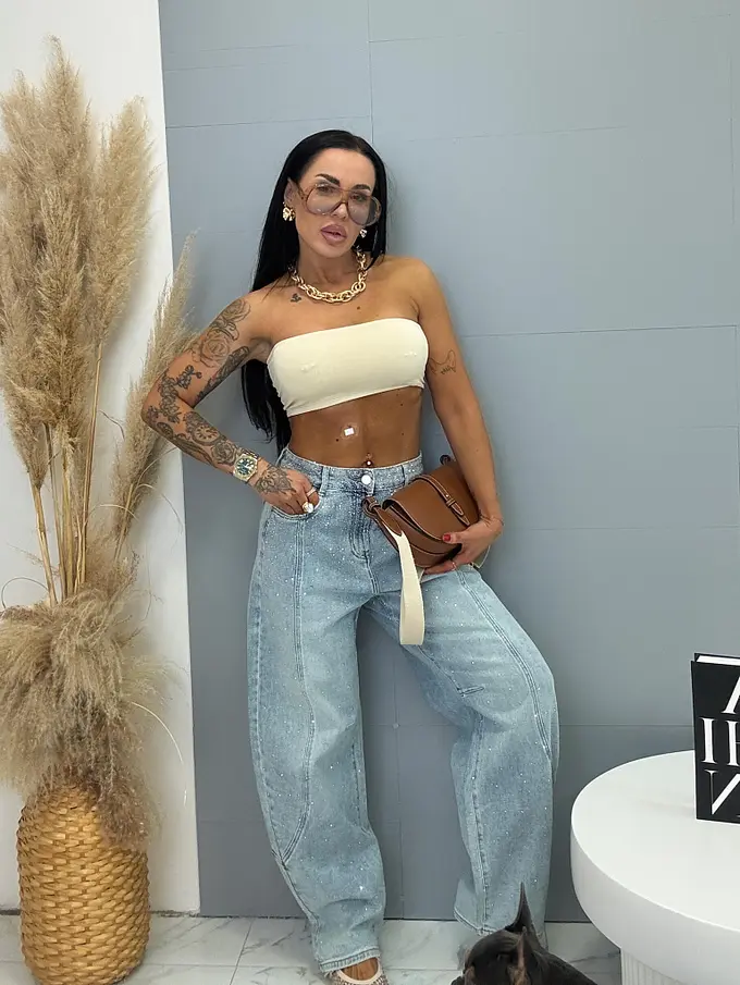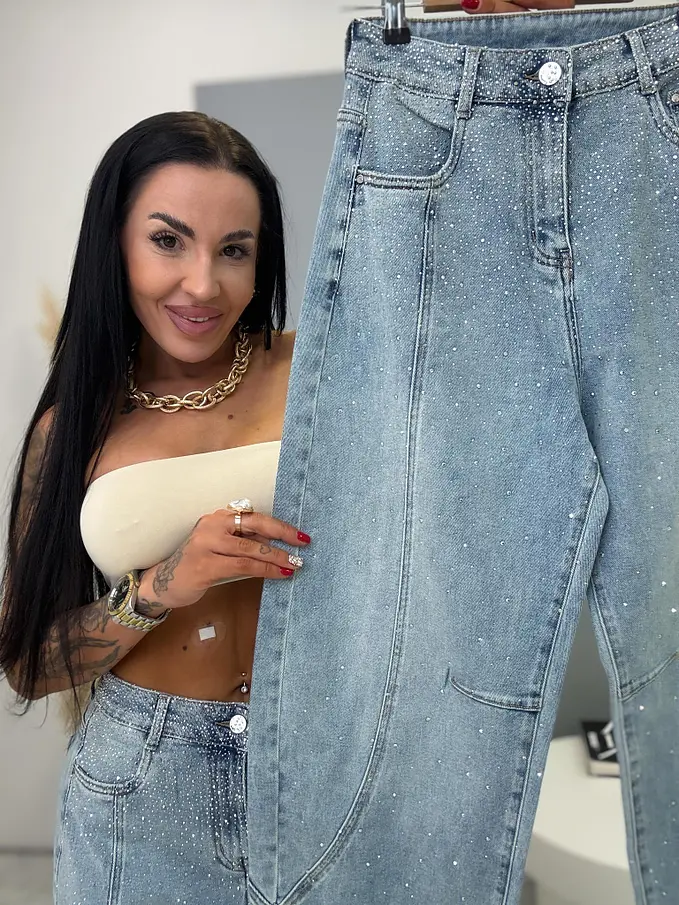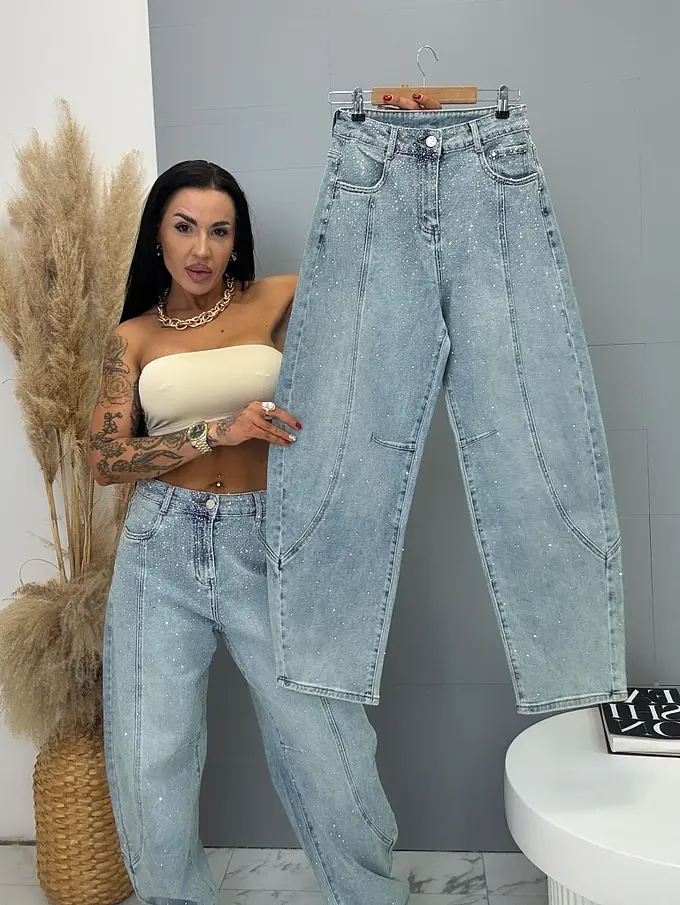 Džínsy s vysokým pásom, balónového strihu zdobené kamienkami ZOE