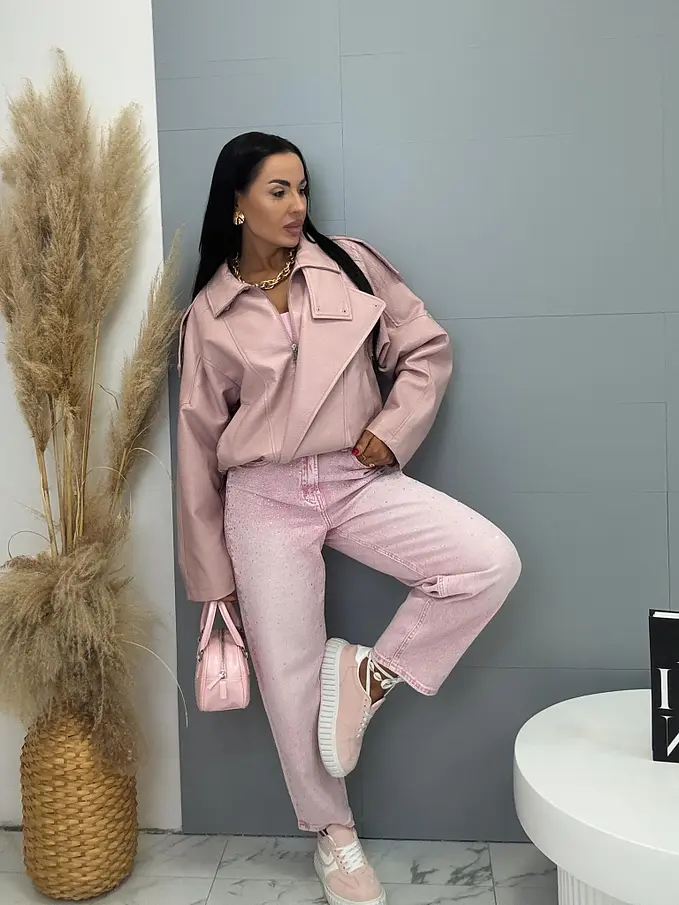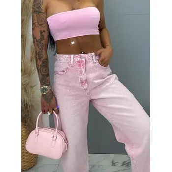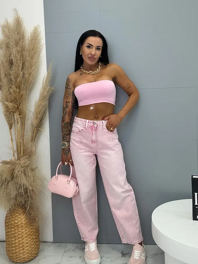 Džínsy s vysokým pásom zdobené kamienkami ROSE
