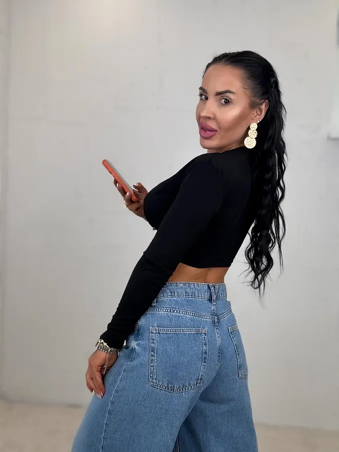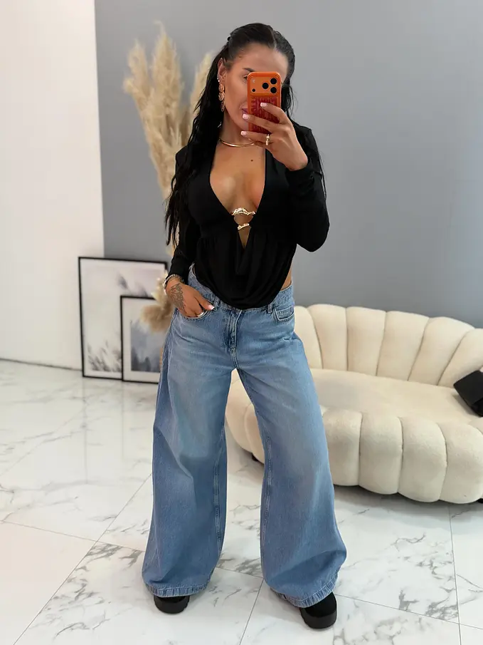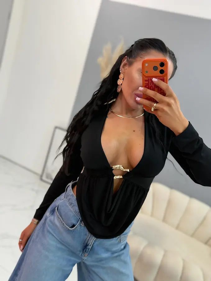 Elastická čierna blúzka so zlatou ozdobou ADLEY