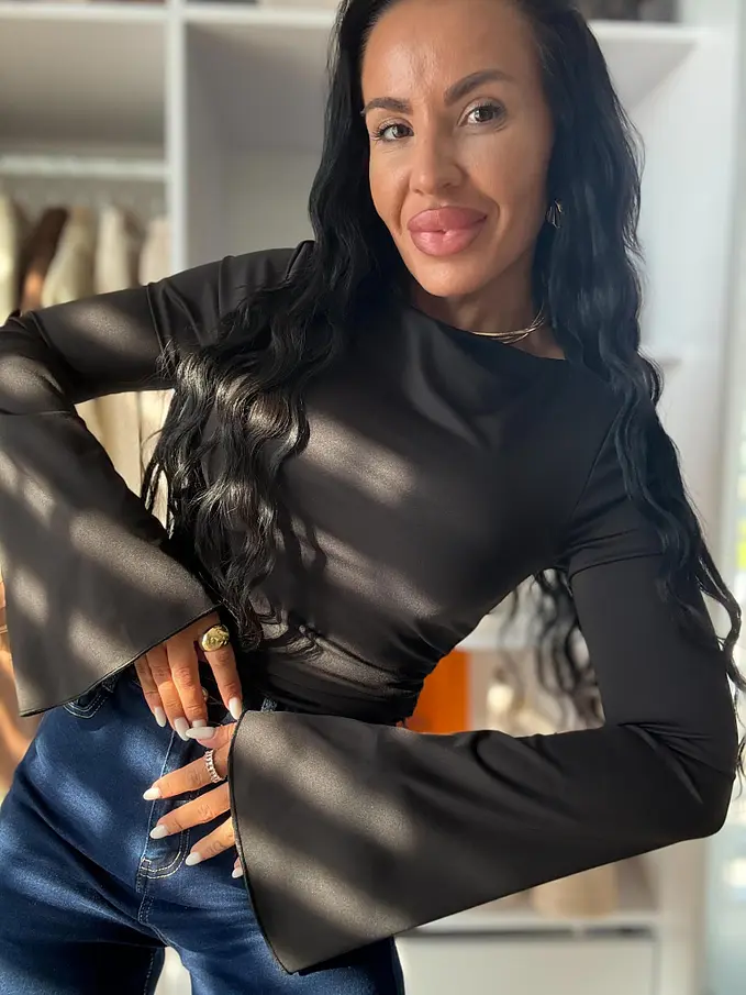 Modelka čiernovláska meria 164 cm a váži 57 kg.