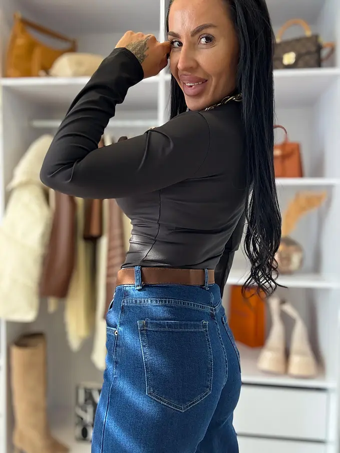Modelka čiernovláska meria 164 cm a váži 57 kg.