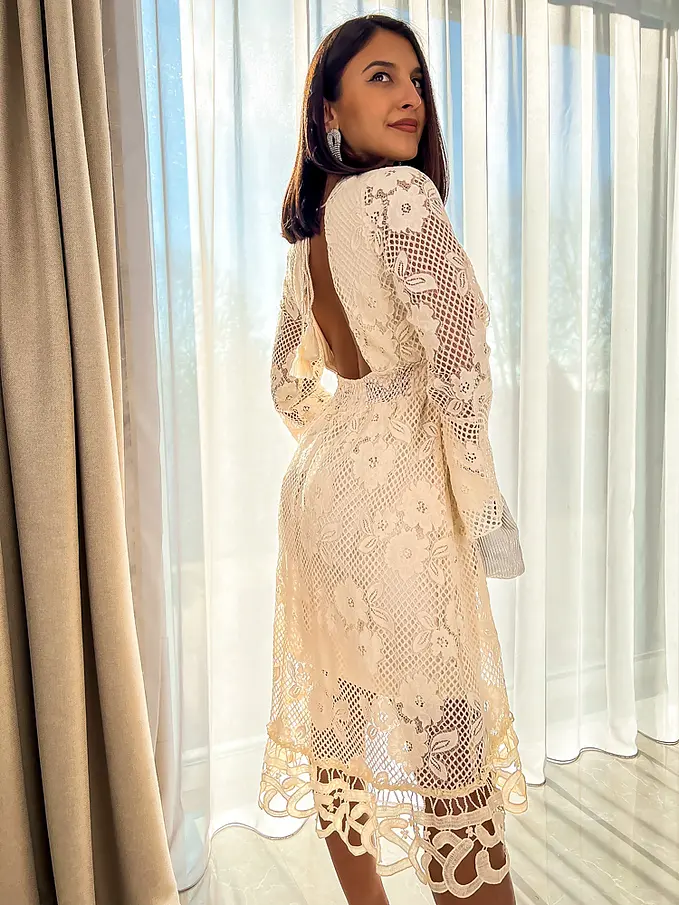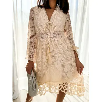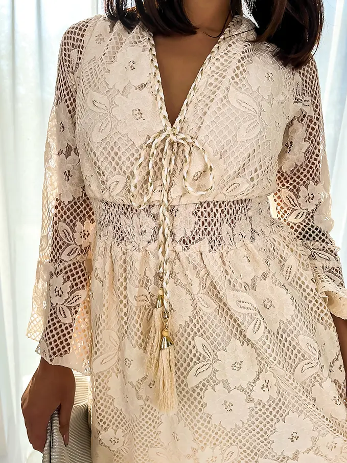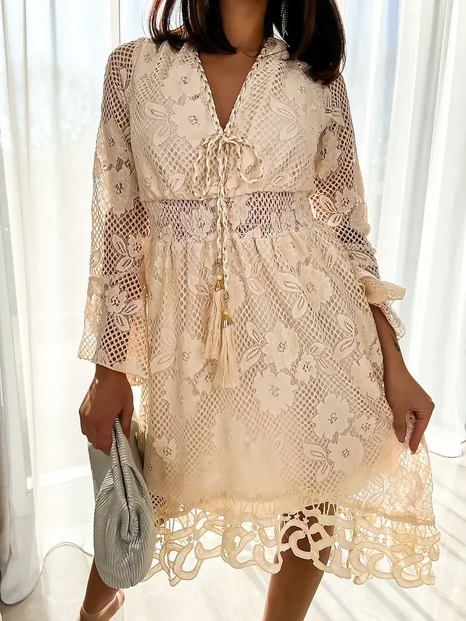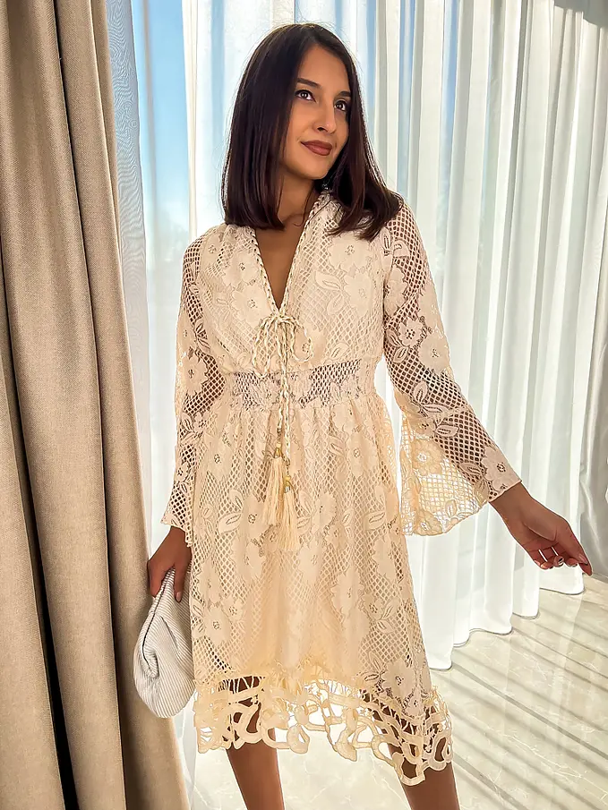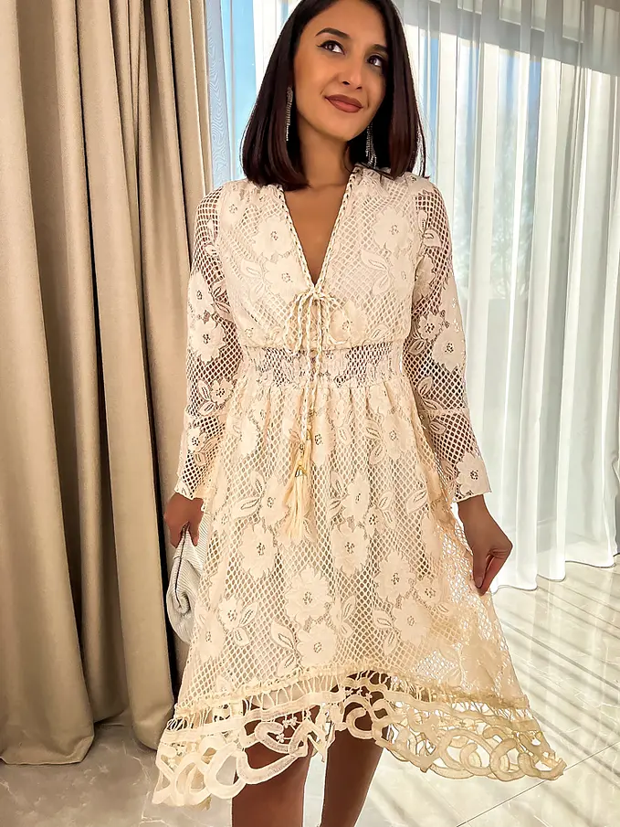 Elegantné béžové čipkované šaty NAKIYA