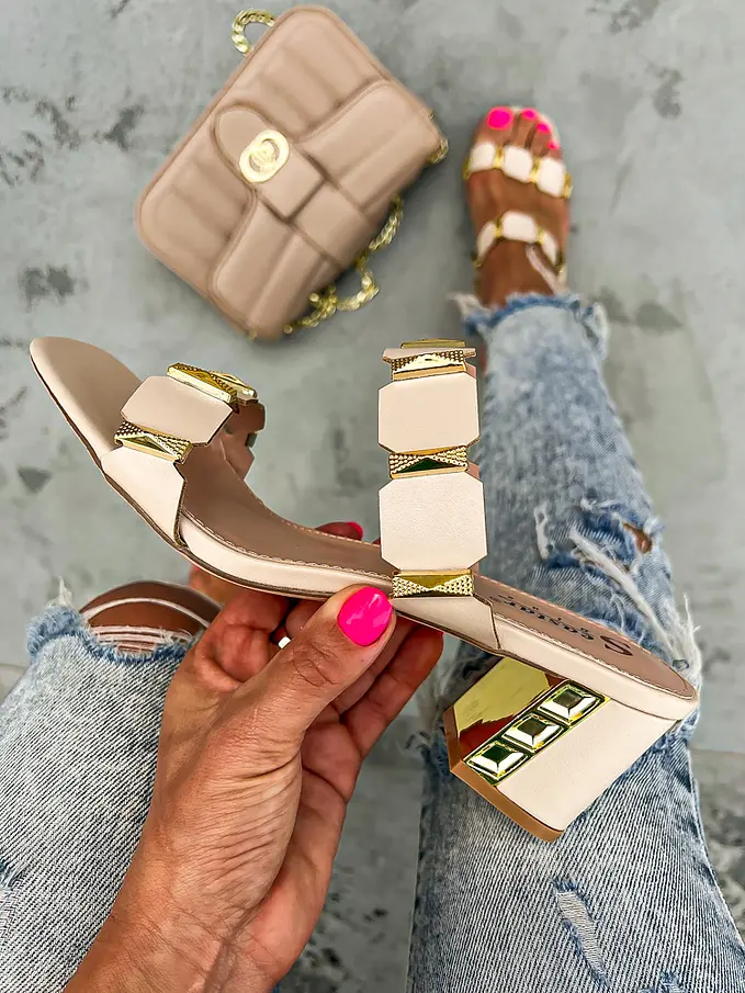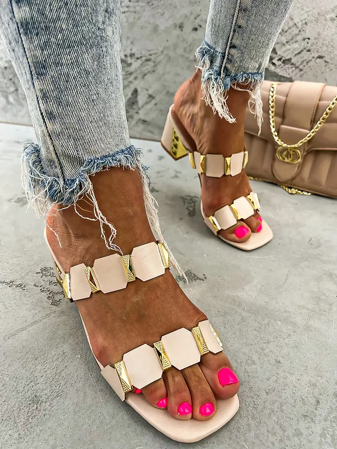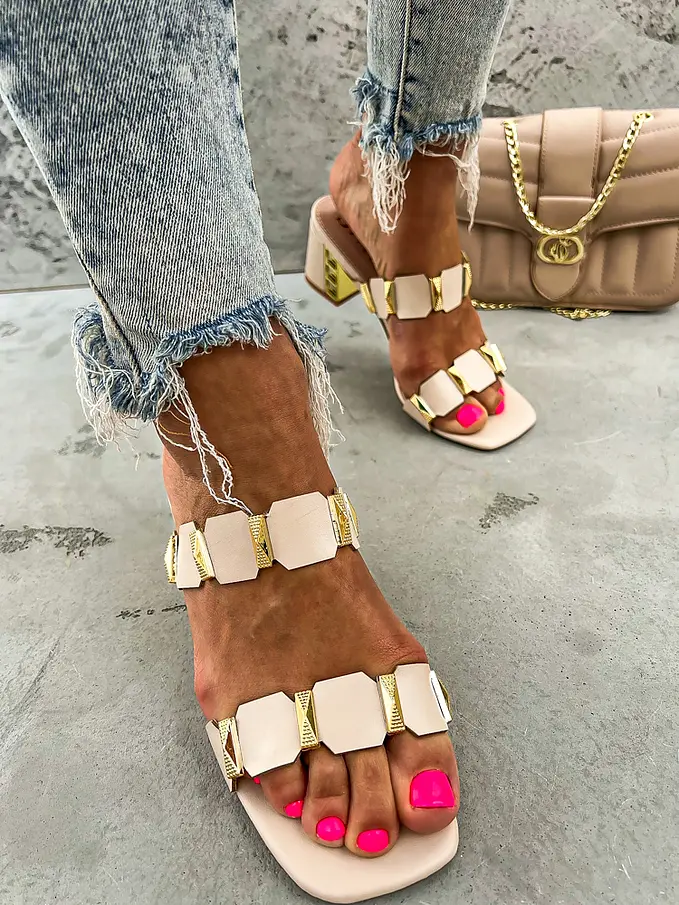 Pohodlné a trendy sandále na každú príležitosť. Ozdoby majú zlatú farbu.