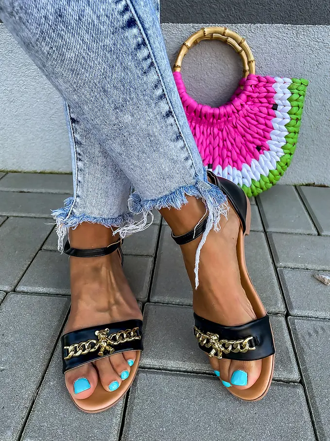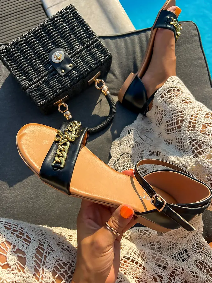 Elegantné sandále so zlatou ozdobou ROSALYN-
