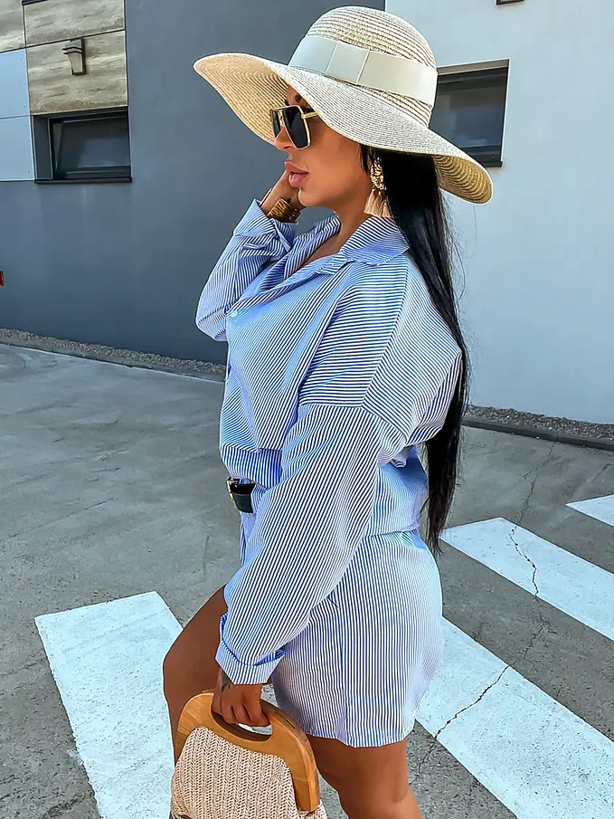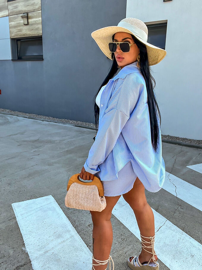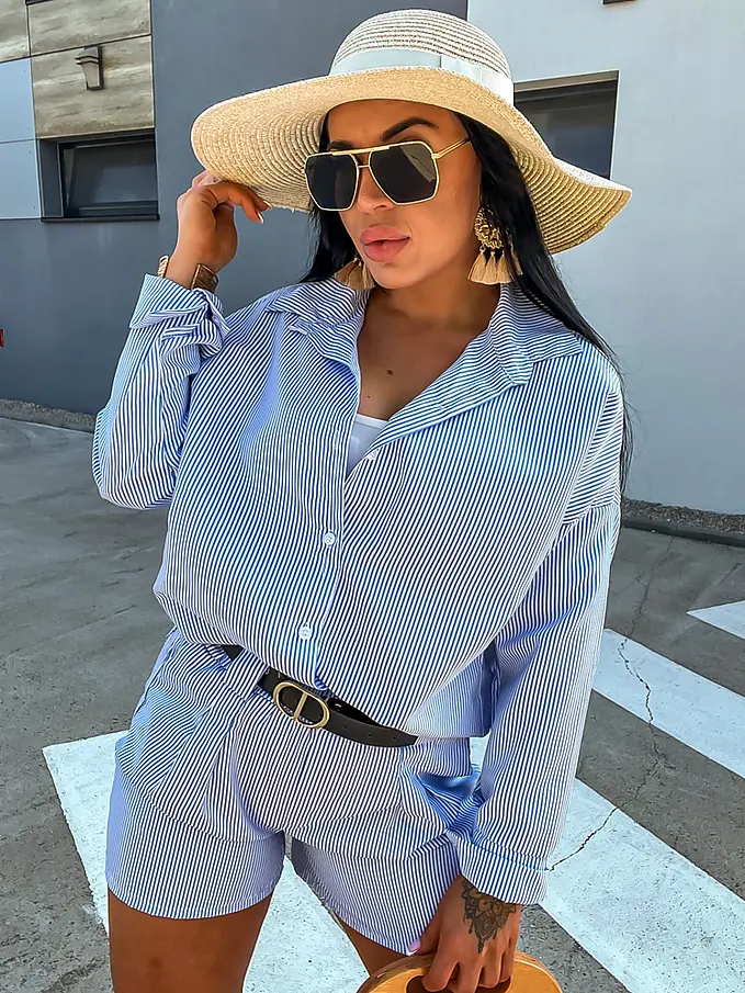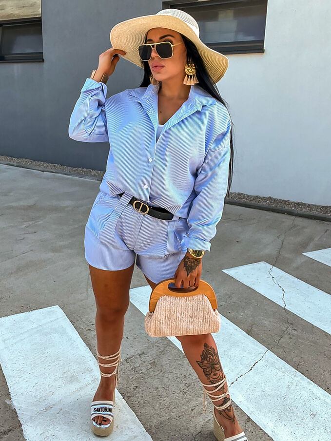 Premium kvalita. Módny komplet pre extravagantné ženy. Komplet sa pozozstáva z košele a šortiek. Materiál nie je elastický. Šortky majú gumený pás.