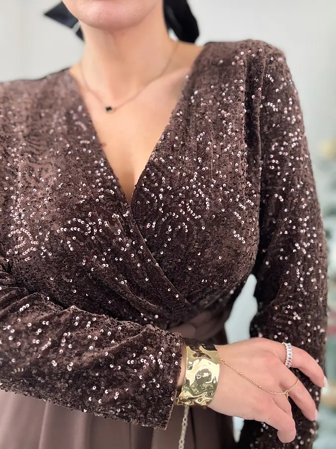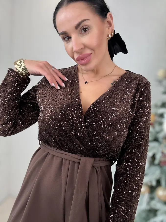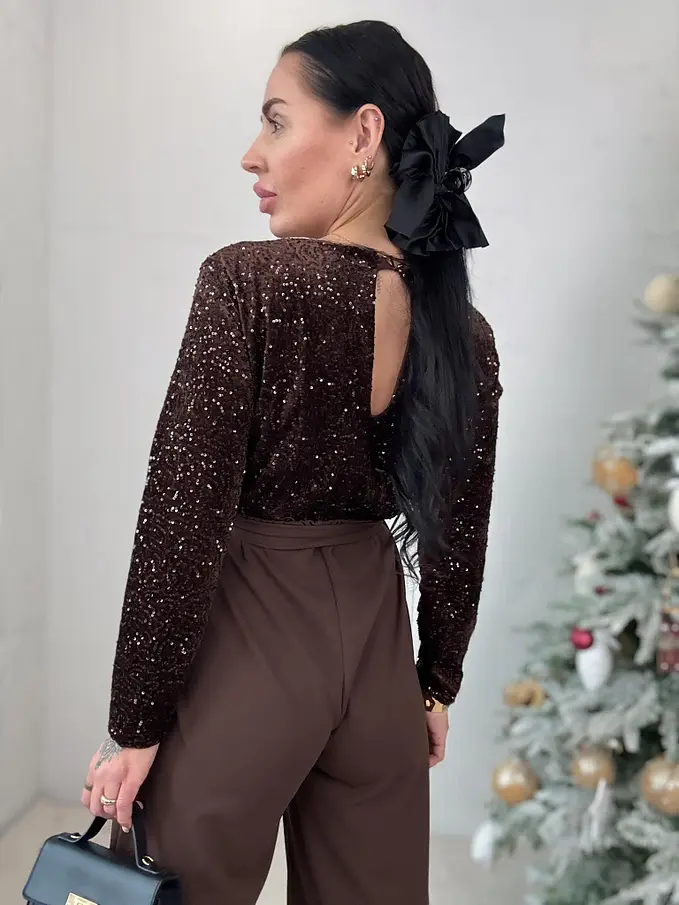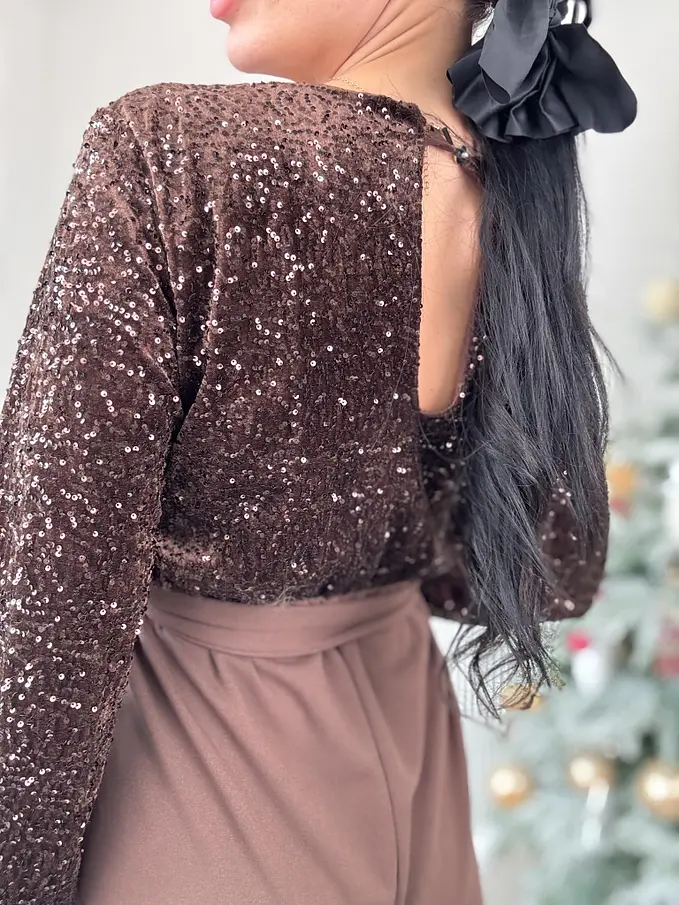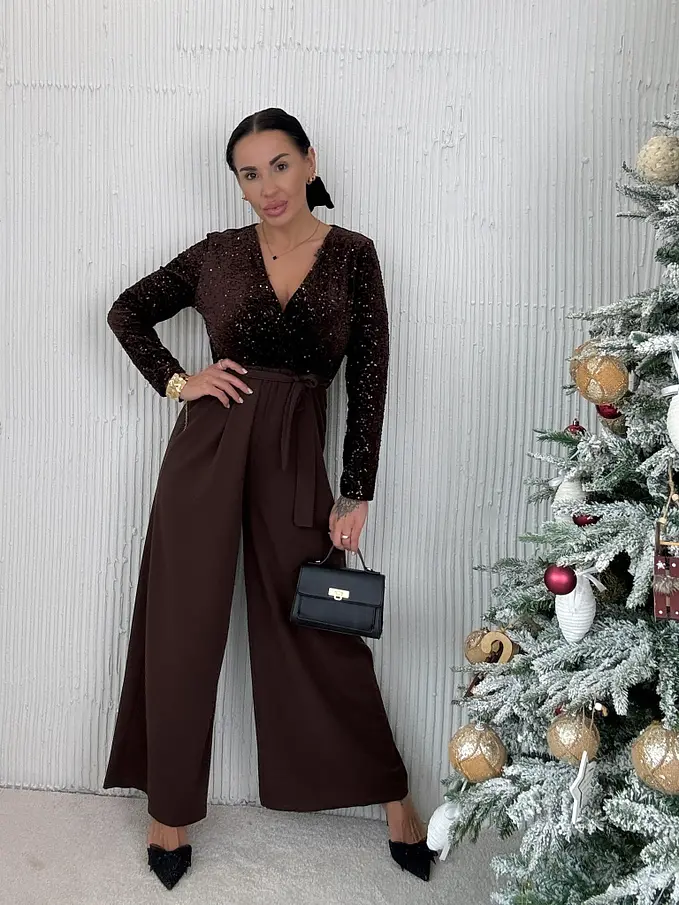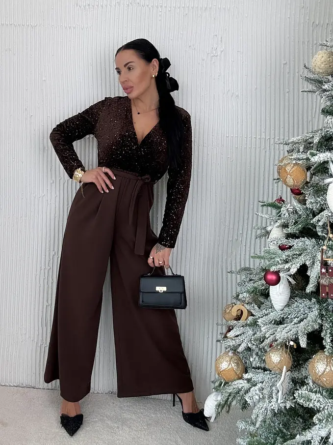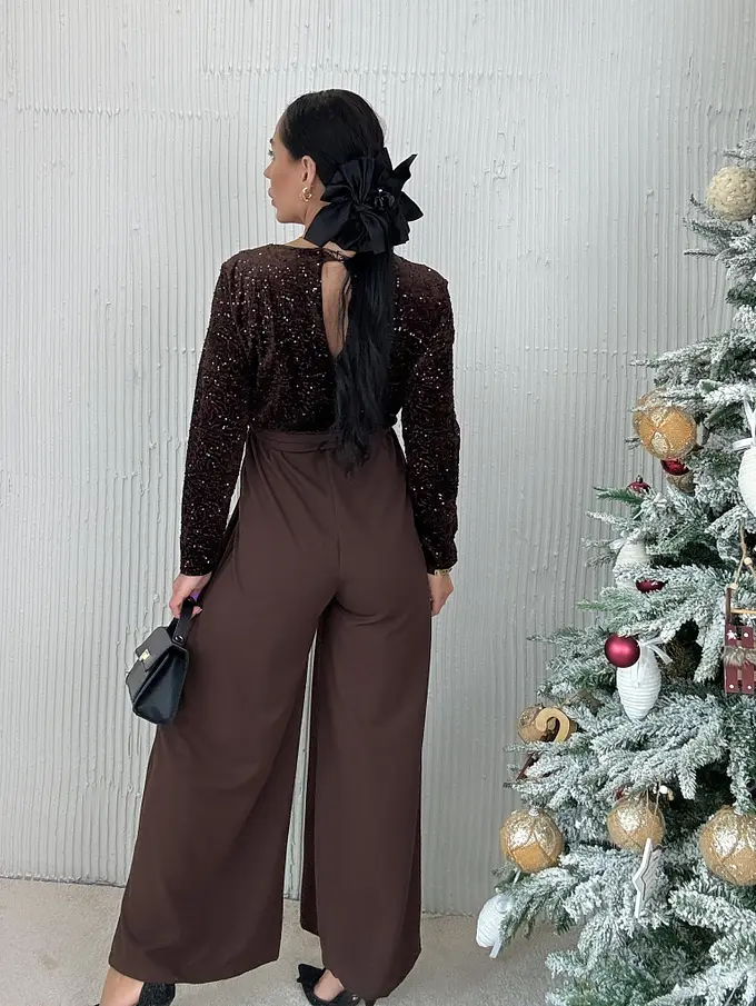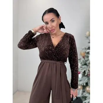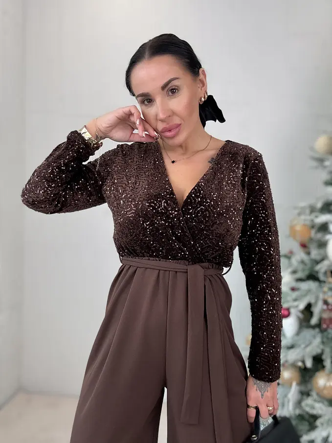 Elegantný overal zdobený flitrami s opaskom FABIOLA