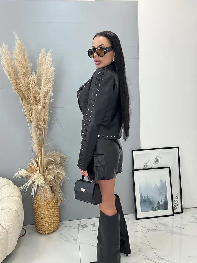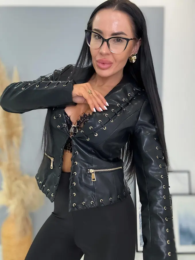 Koženková bunda pre extravagantné ženy.