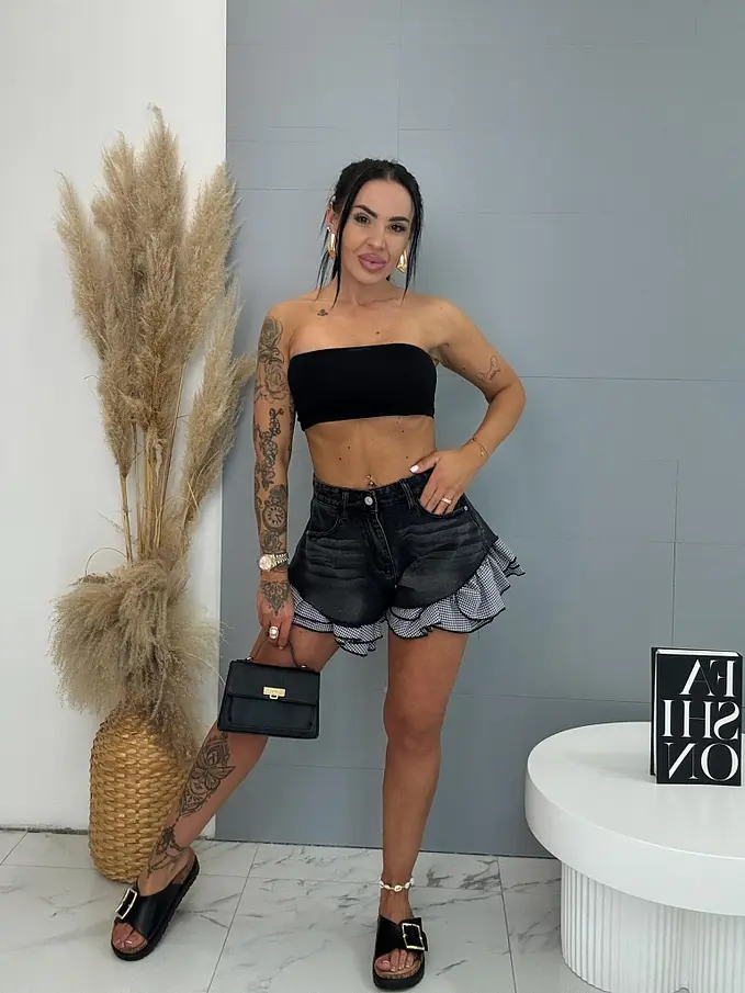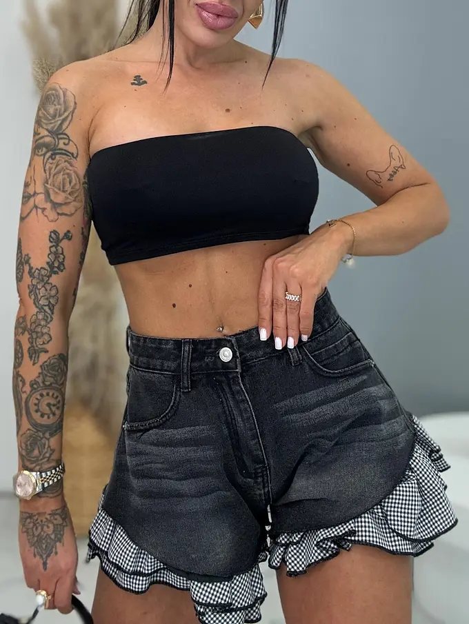 Extravagantné kombinované denim šortky FARELA