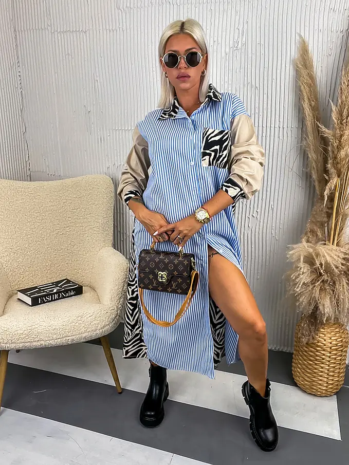 Dámske košeľové šaty z príjemného materiálu. Materiál šaty sa líši podľa vzorov. Je iba minimálne elastický.