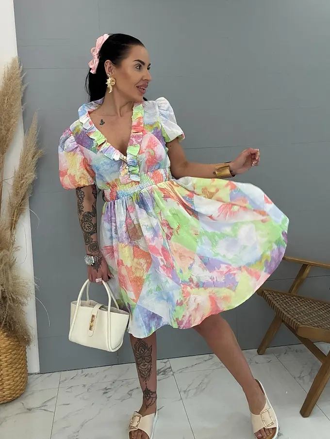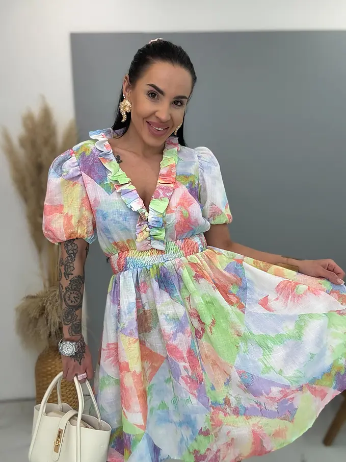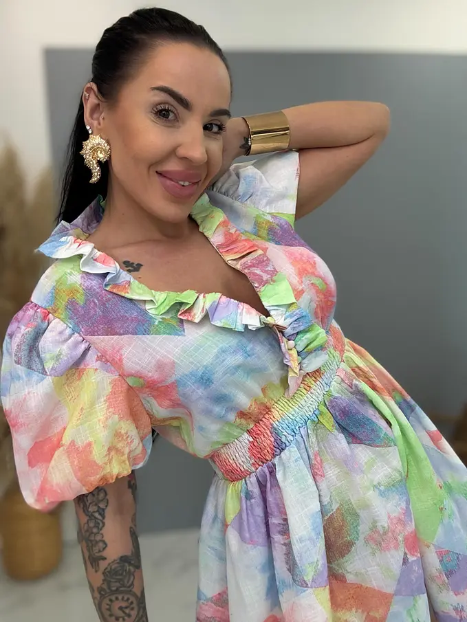 Farebné šaty s gumeným pásom CUTE