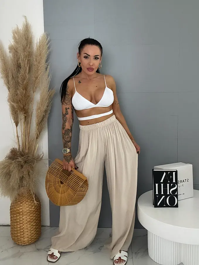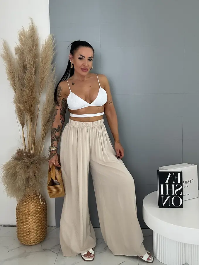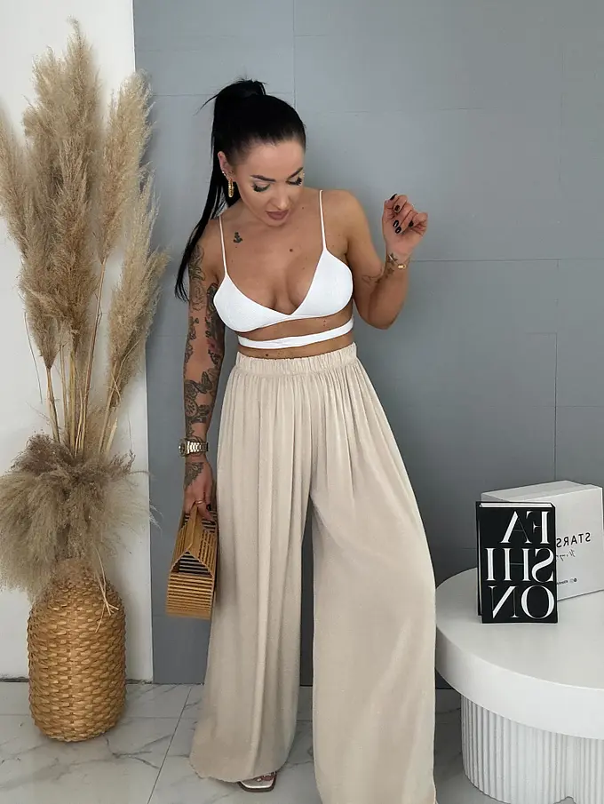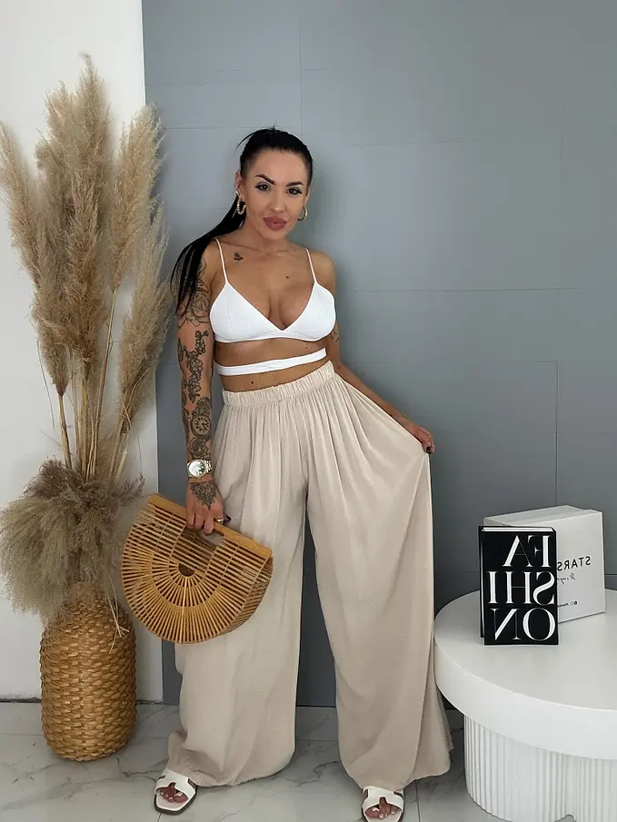 Nohavice s gumou v páse, jemné na dotyk, materiál nie je elastický