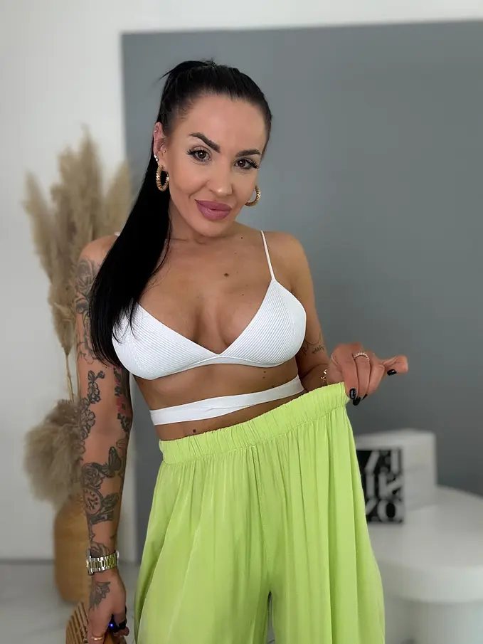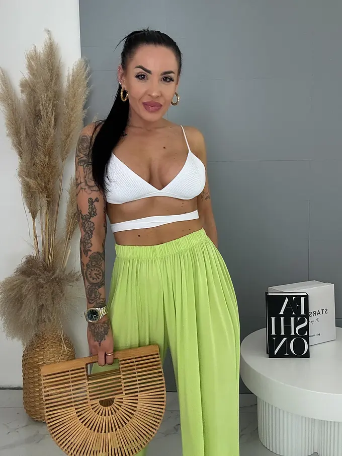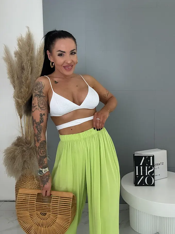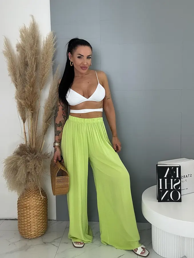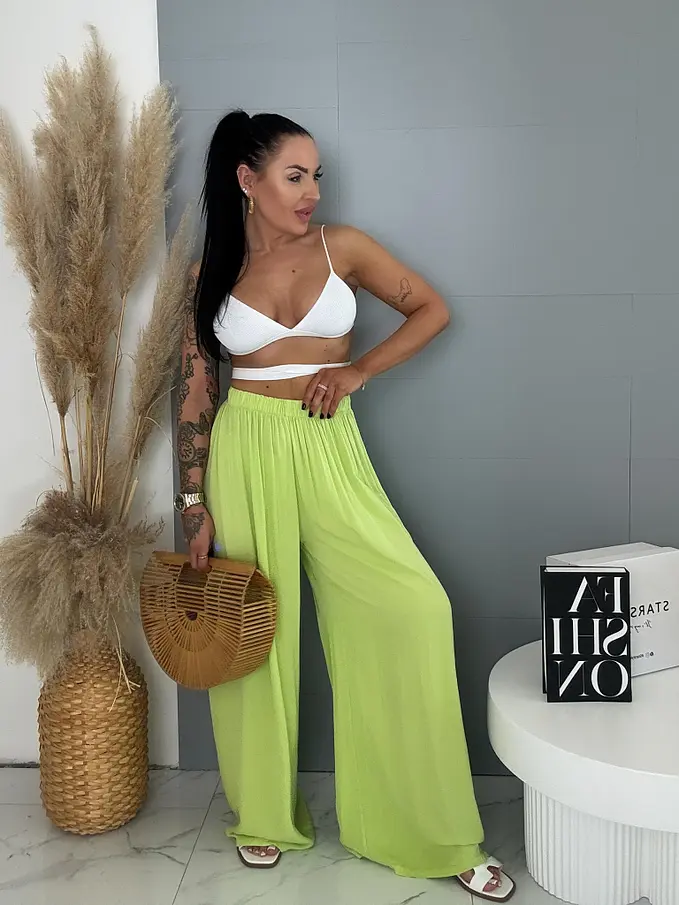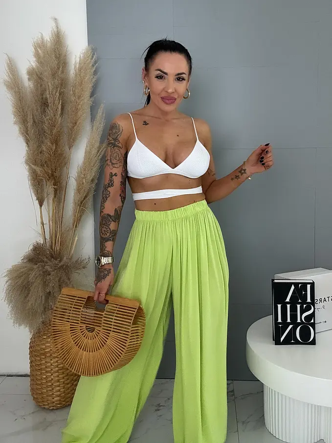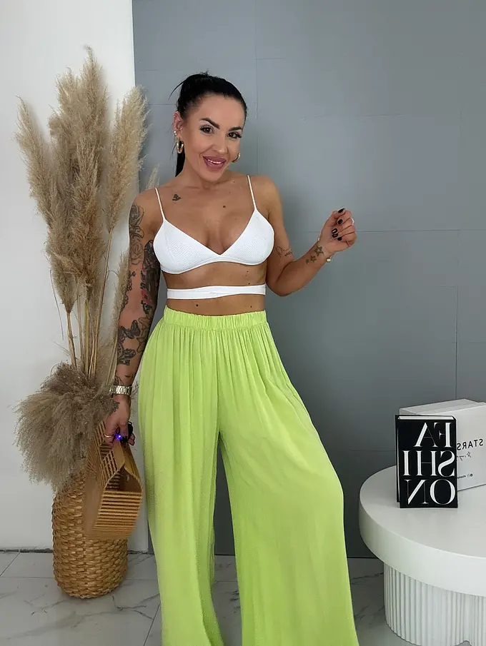 Nohavice s gumou v páse, jemné na dotyk, materiál nie je elastický