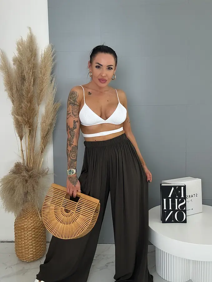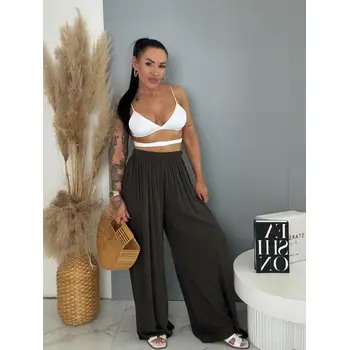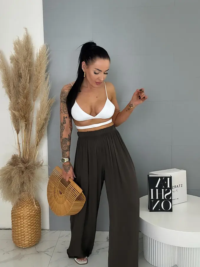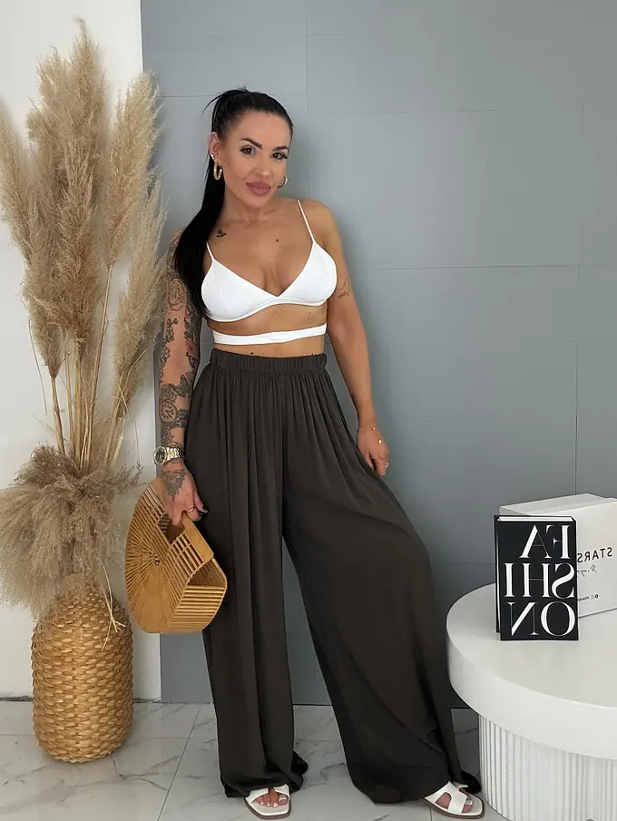 Flowing tmavohnedé nohavice s gumeným pásom ARIA