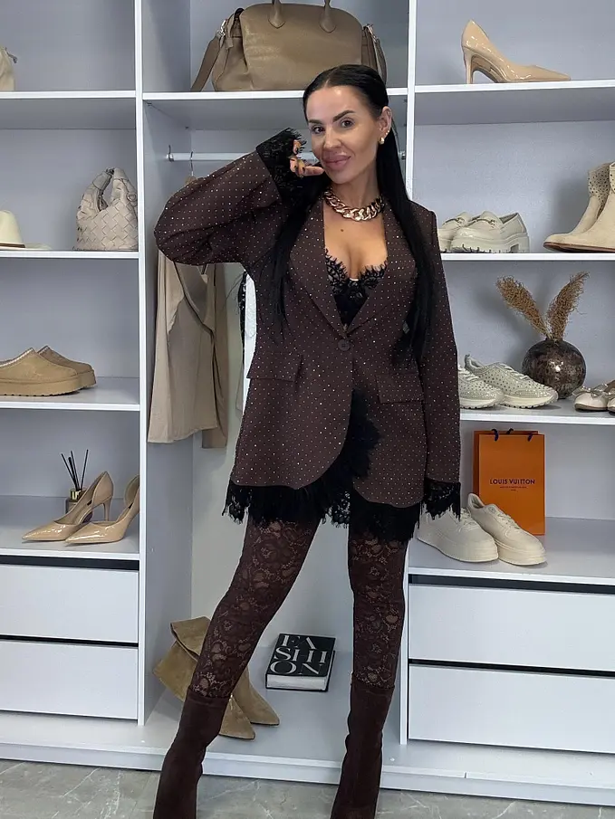 Hnedé čipkované legíny kaliopky PRISINA