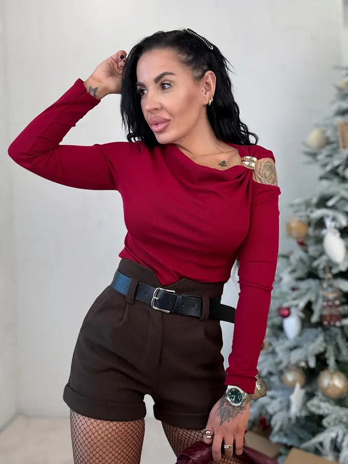 Ženské šortky s opaskom. Látka je mierne elastická, príjemná a teplá.