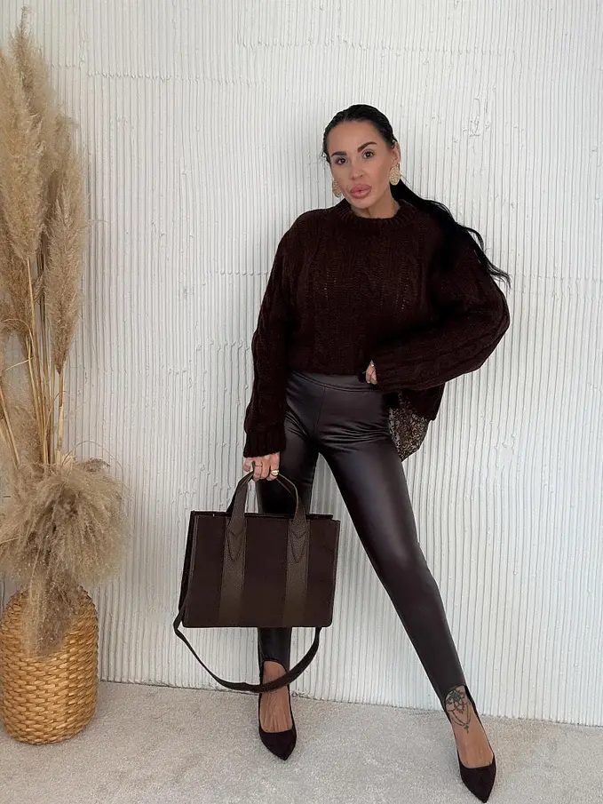 Hnedé kožené legíny kaliopky FABINA