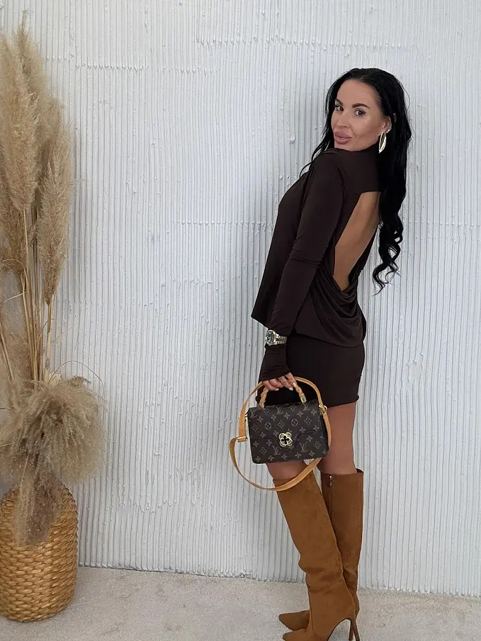 Hnedé šaty s odhaleným chrbtom JEANNE
