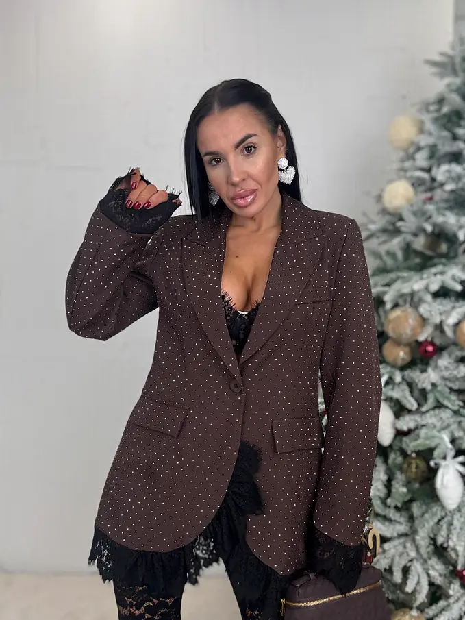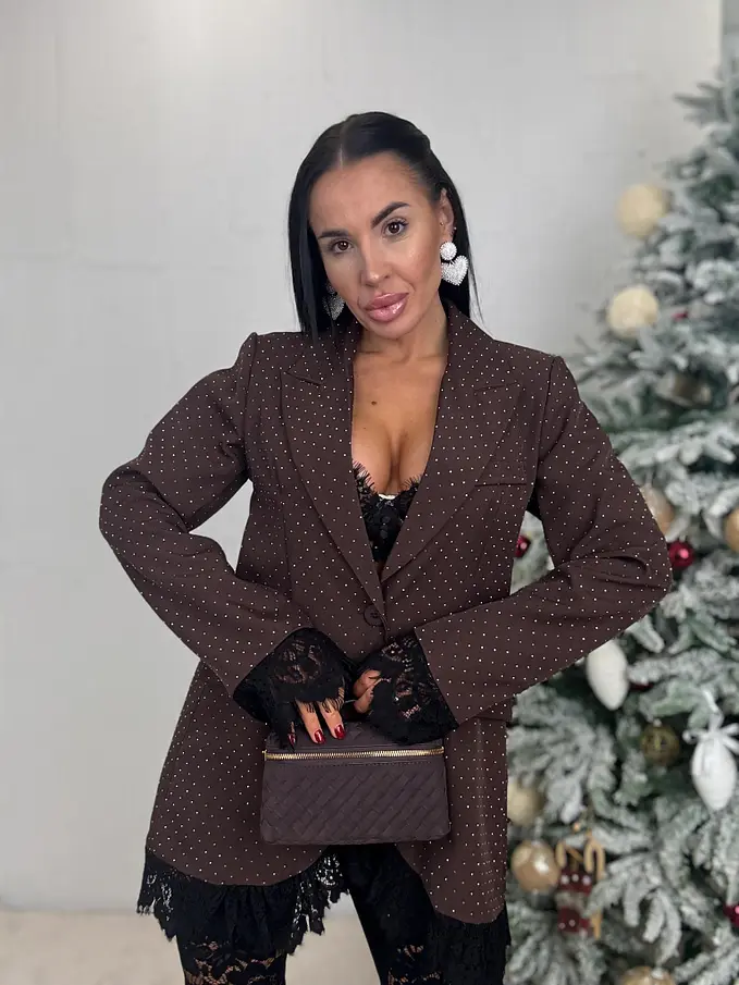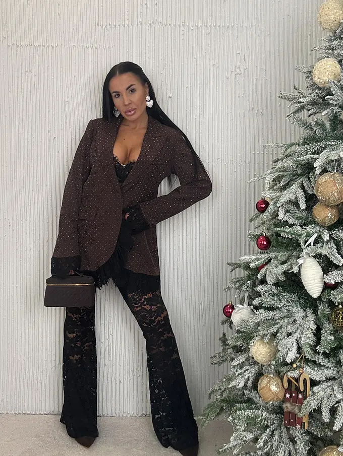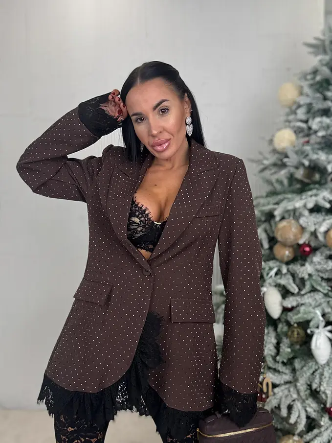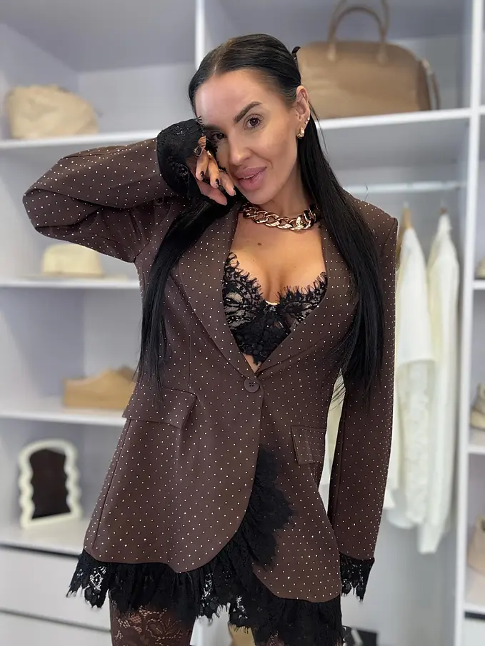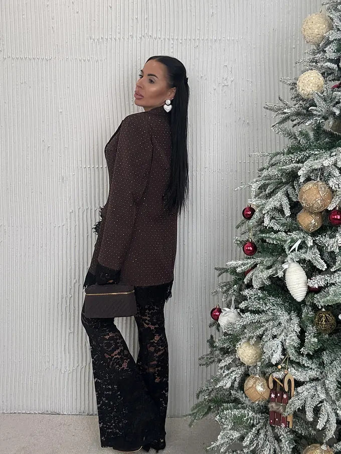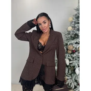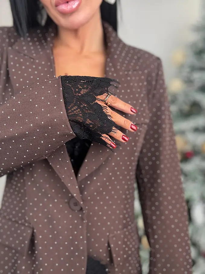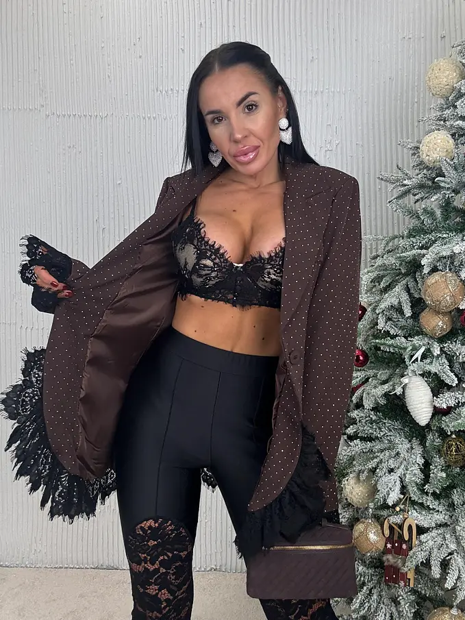 Hnedé trblietavé sako s čipkou SELINA