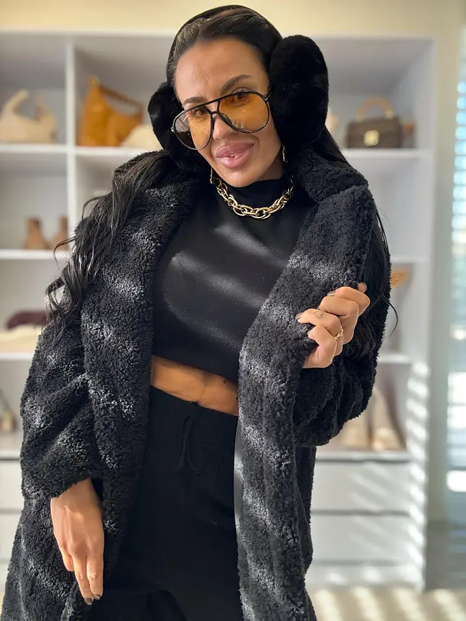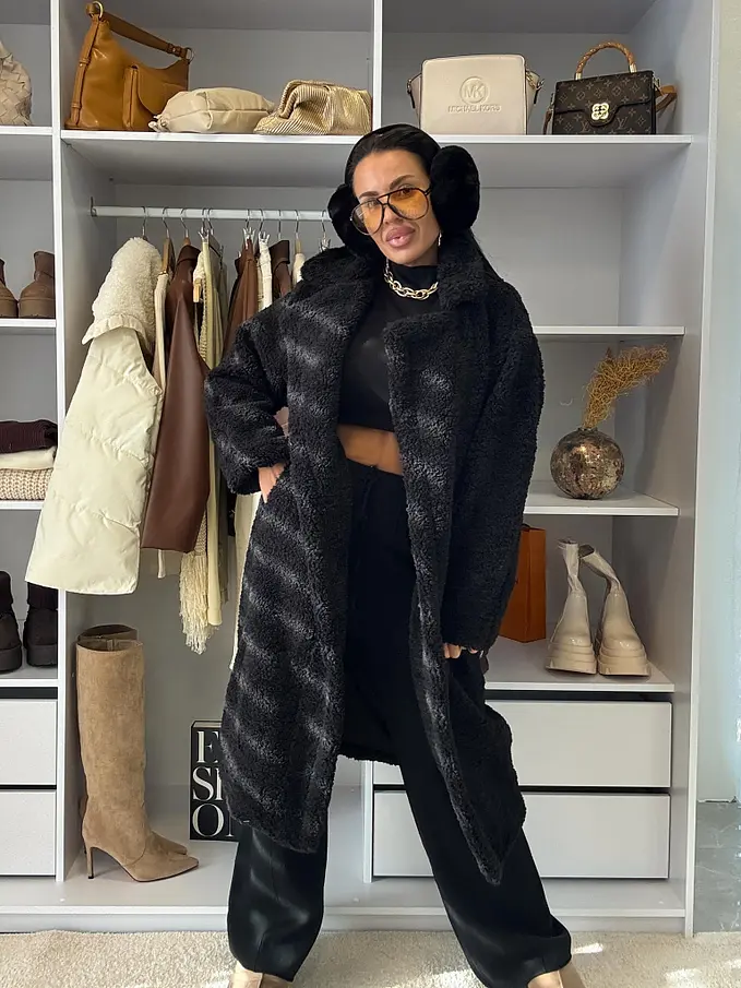 Modelka meria 164 cm a váží 57 kg. Nosí veľkosť S