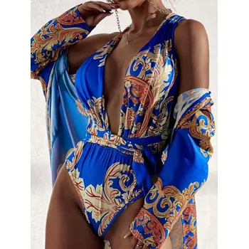 Jednodielne plavky s kaftanom. Model vytvorený z elastickej látky.
