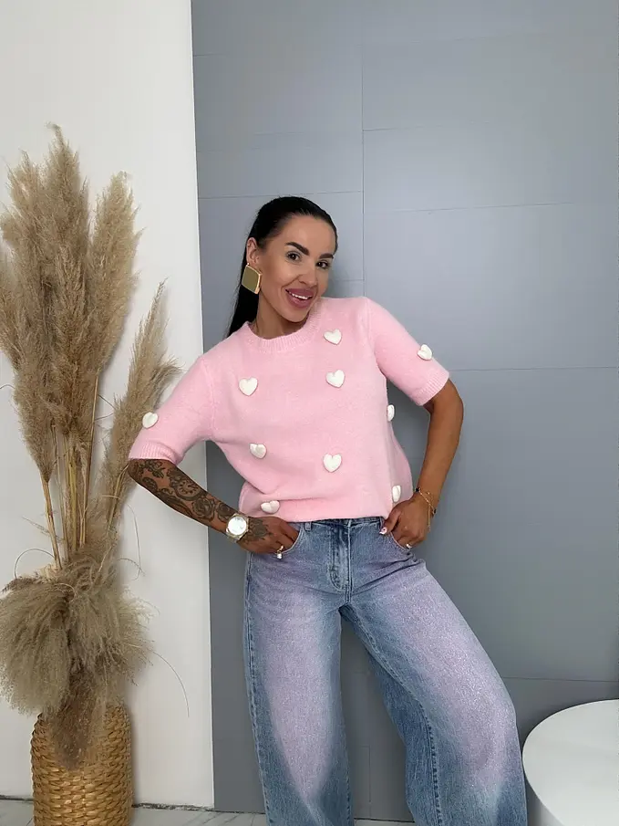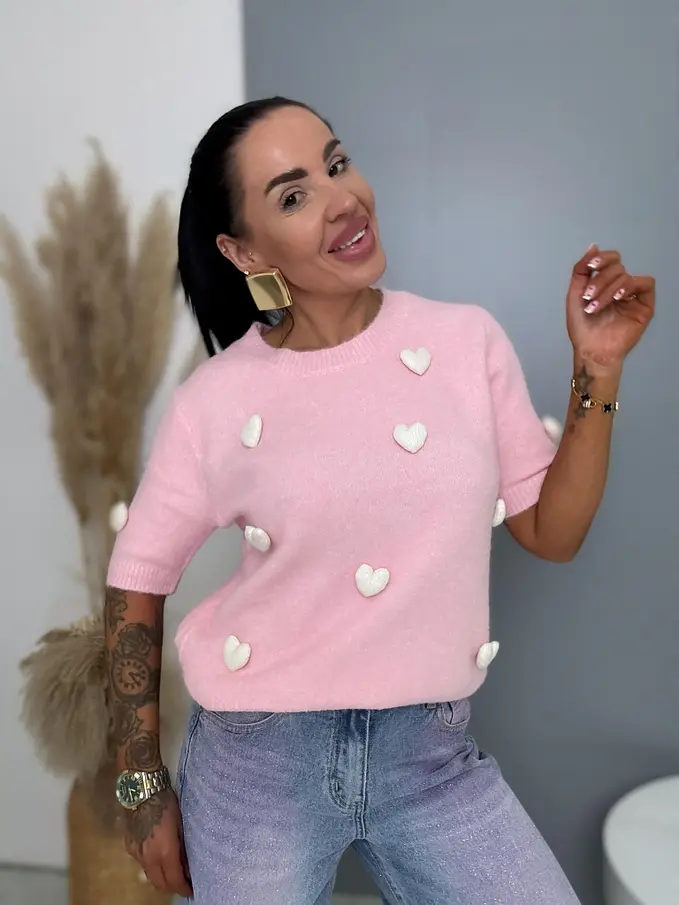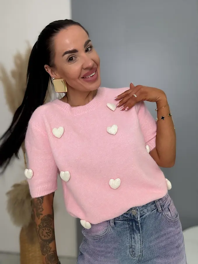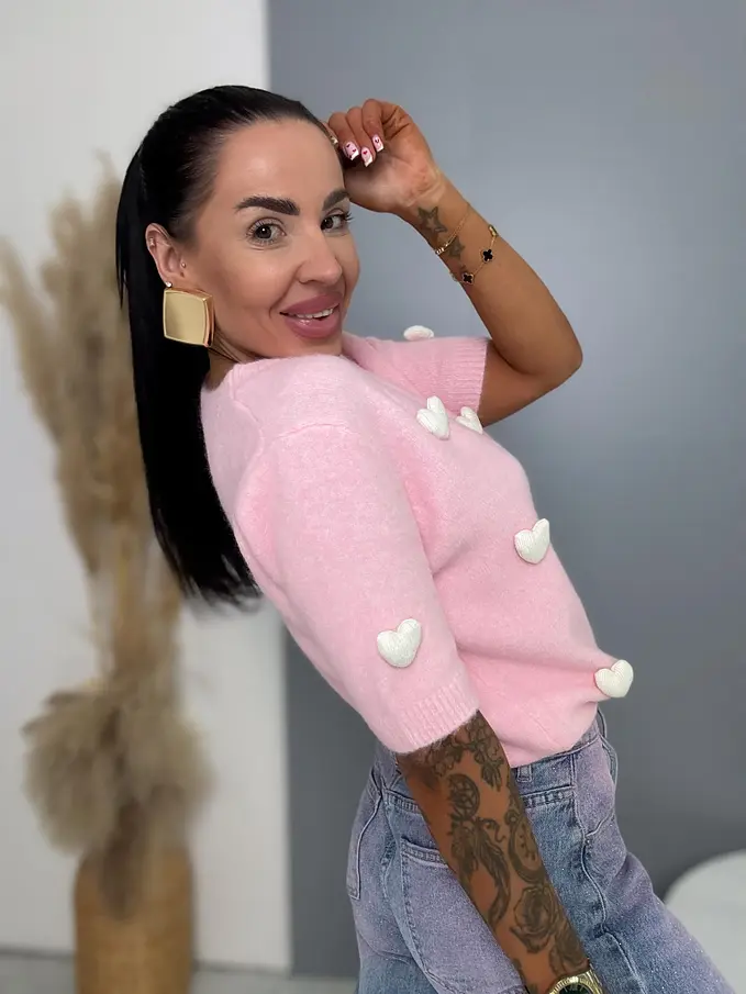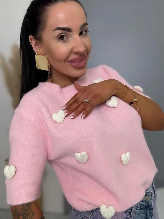 Jemný mohérový pulóver so srdiečkami ADELIA