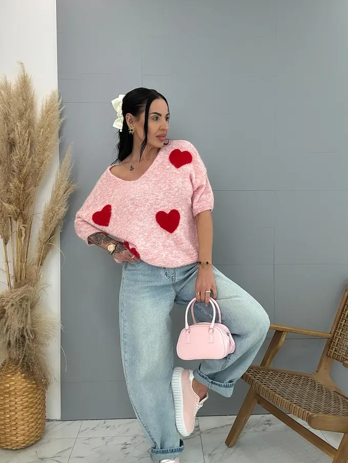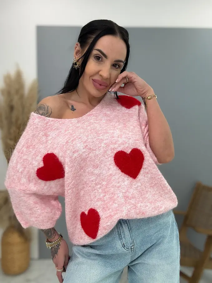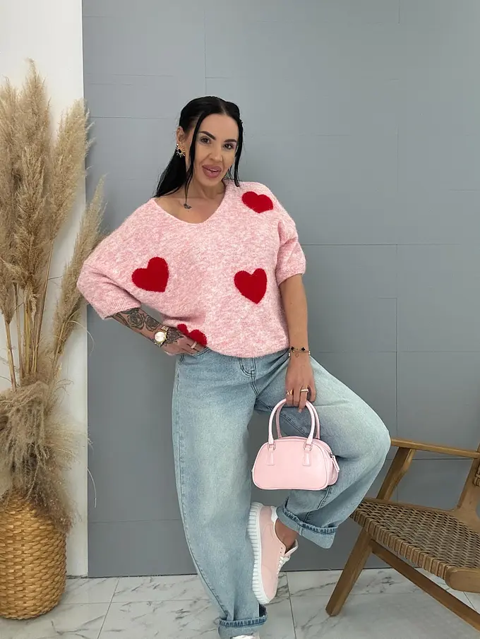 Jemný mohérový pulóver so srdiečkami KITTI